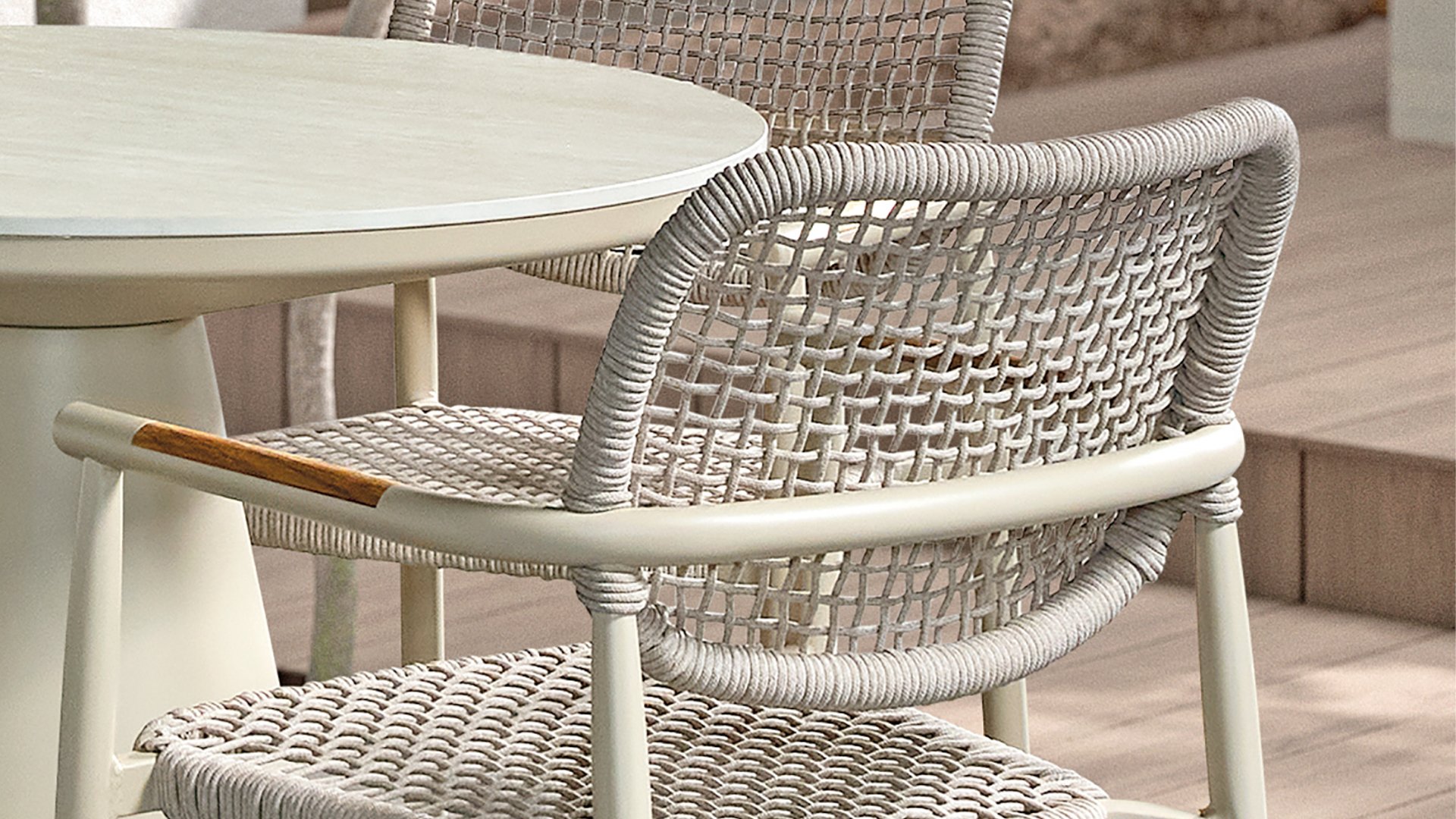- Hochwertige Materialien: Wetterfeste Kissen, ein robuster Aluminiumrahmen und Rope-Details, die jahrelang schön bleiben.