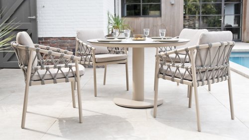 Die Gescova Midleton-Kollektion besteht aus modernen Außenmöbeln der belgischen Marke Gescova, die für die Verwendung langlebiger Materialien und zeitgemäßes Design bekannt ist.