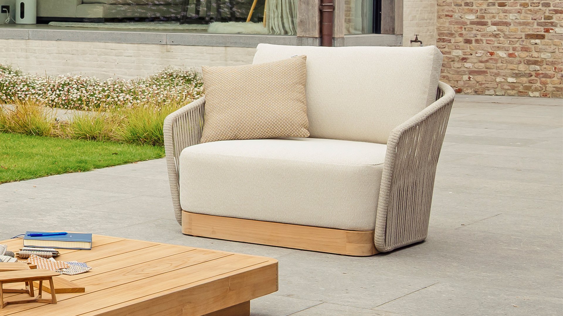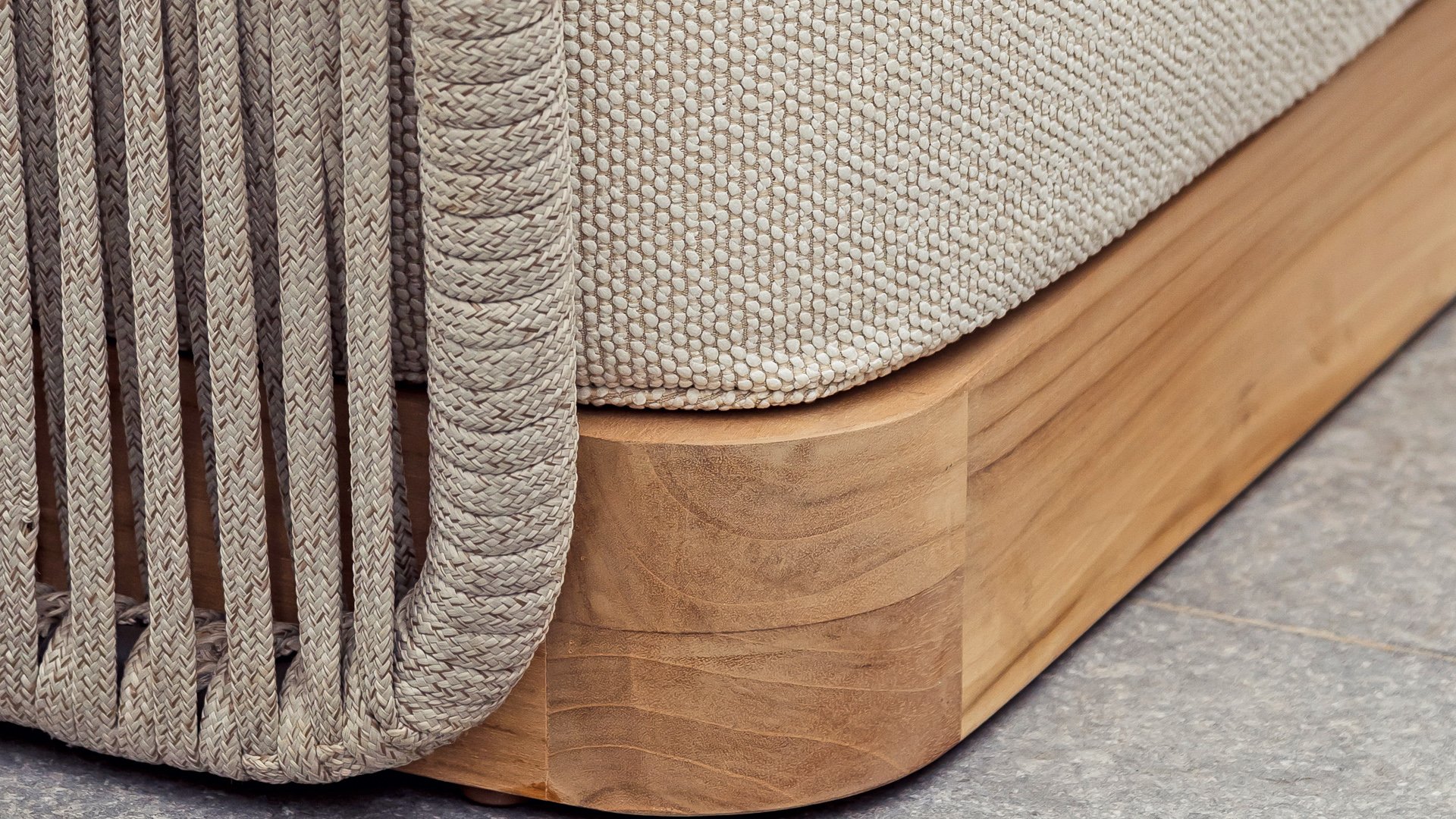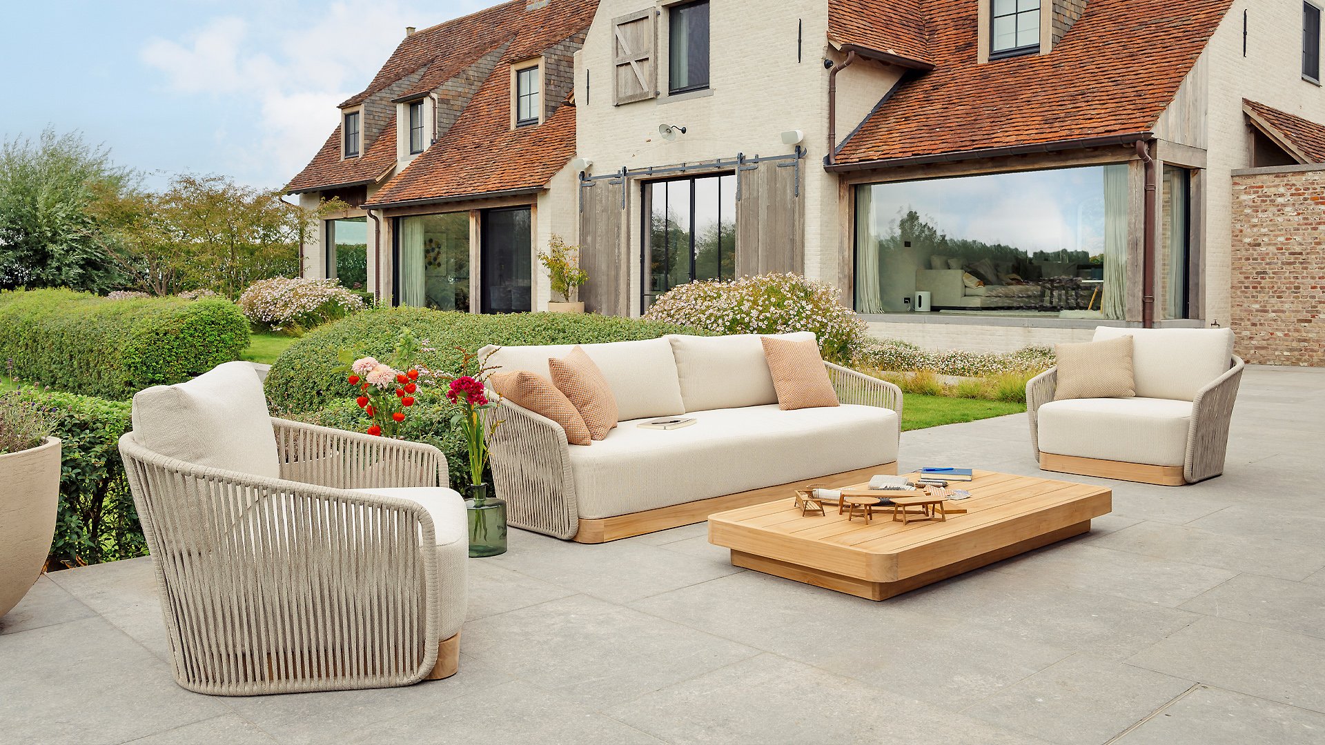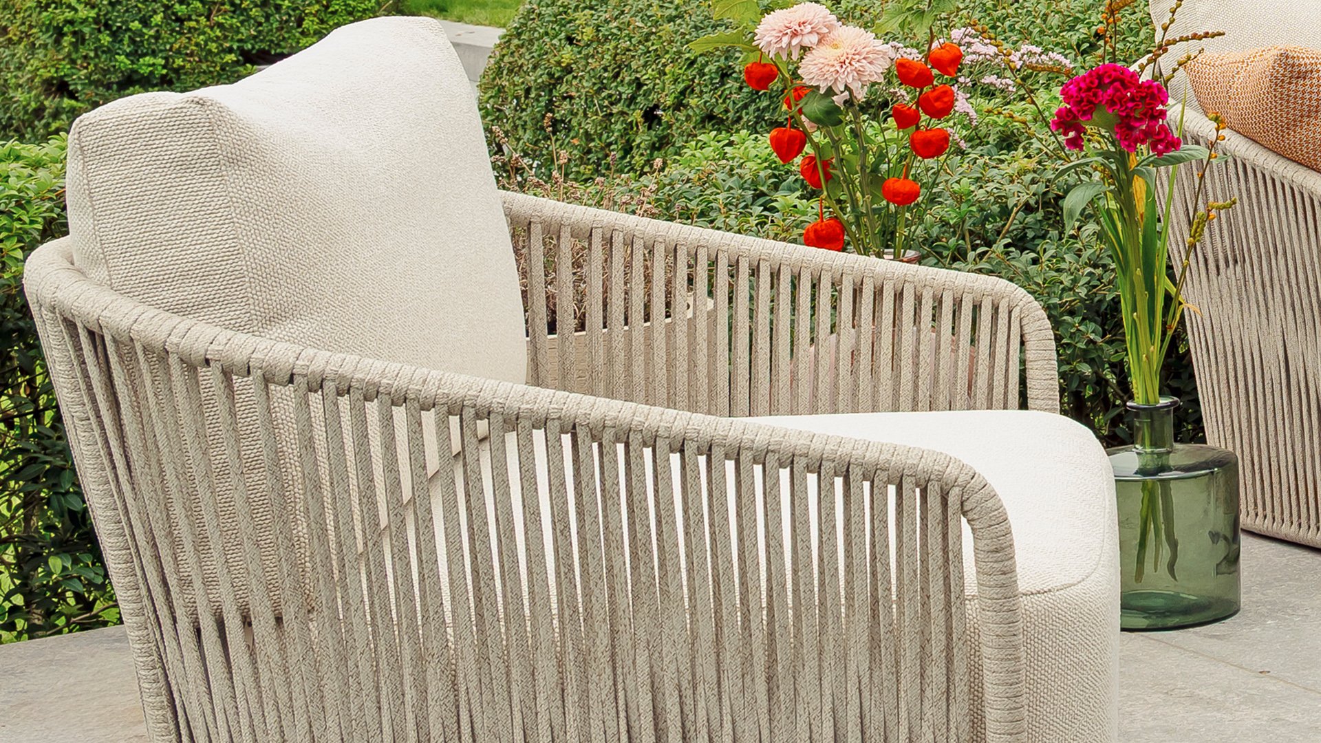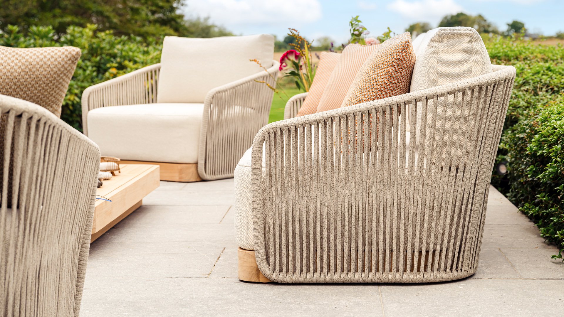 Materialien von Spitzenqualität – Allwetter-Kissen, pflegeleichte Gestelle und hochwertiges Rope sorgen dafür, dass Ihr Set jahrelang schön bleibt.