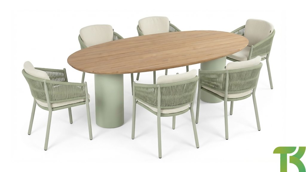 1 x Hartman Malaga Tisch Alu Soft Green - Teak 220x120cm