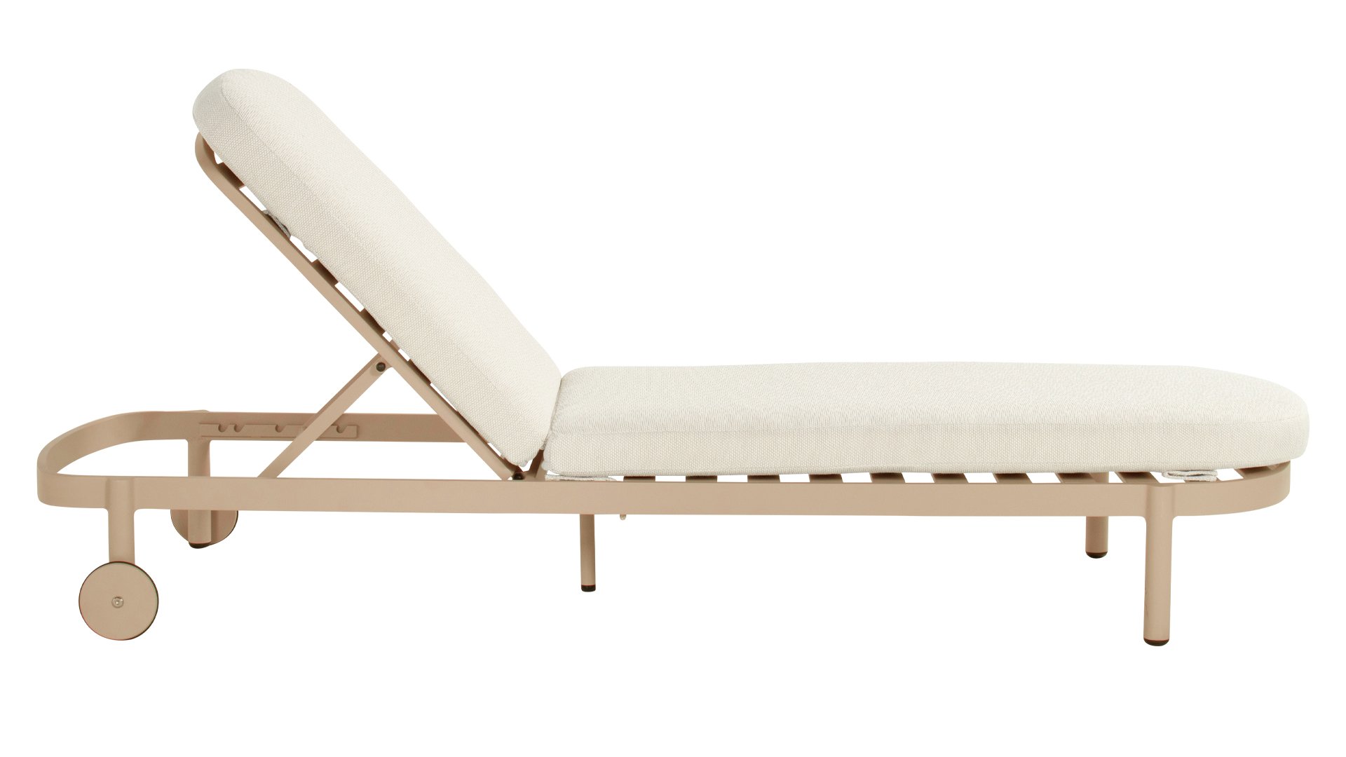 Das Palma Sonnenliege vereint Stil mit praktischem Nutzen. Dank der verstellbaren Rückenlehne und der Rollen lässt sich die Liege leicht bewegen und anpassen. Das beige Weather Ready-Kissen sorgt auch bei wechselhaftem Wetter für Komfort.