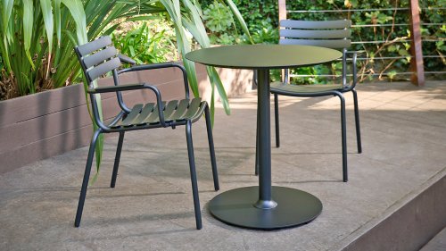 ALUA ist ein vielseitiger Aluminium-Esszimmerstuhl, der für verschiedene Umgebungen konzipiert ist, ob auf einem privaten Balkon, in einem öffentlichen Park oder in einem Restaurant. Der Stuhl ist nach dem Designkonzept des HOUE ReCLIPS Esszimmerstuhls gebaut und erfordert minimale Wartung.