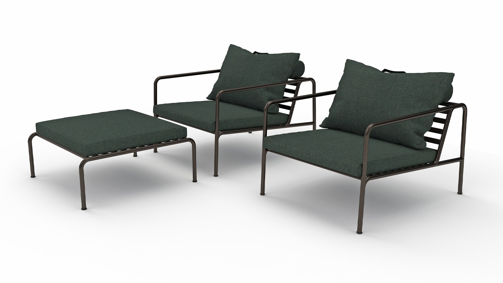 Die HOUE AVON-Kollektion wurde aus dem Wunsch heraus entworfen, etwas mit einem sehr leichten Erscheinungsbild und einem niedrigen, schlanken Profil zu schaffen, während ein hohes Maß an Komfort beibehalten wird. Der wartungsfreie Rahmen und die Konstruktion der großen weichen Rückenkissen ist genau das: die Einfachheit der Struktur, bei der niedrige Linien dafür sorgen, dass das Design immer stolz aussieht, ob mit oder ohne Kissen - Sommer oder Winter. Die Griffe der Kissen sind ein Statement für die Funktion des Produkts und machen sie bei Bedarf leicht zu greifen und zu verstauen.