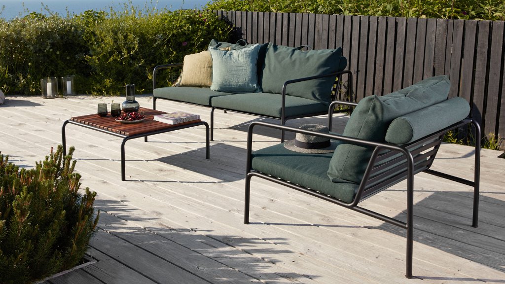 Die HOUE AVON-Kollektion wurde aus dem Wunsch heraus entworfen, etwas mit einem sehr leichten Erscheinungsbild und einem niedrigen, schlanken Profil zu schaffen, während ein hohes Maß an Komfort beibehalten wird. Der wartungsfreie Rahmen und die Konstruktion der großen weichen Rückenkissen ist genau das: die Einfachheit der Struktur, bei der niedrige Linien dafür sorgen, dass das Design immer stolz aussieht, ob mit oder ohne Kissen - Sommer oder Winter. Die Griffe der Kissen sind ein Statement für die Funktion des Produkts und machen sie bei Bedarf leicht zu greifen und zu verstauen.