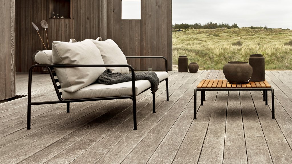 Die HOUE AVON-Kollektion wurde aus dem Wunsch heraus entworfen, etwas mit einem sehr leichten Erscheinungsbild und einem niedrigen, schlanken Profil zu schaffen, während ein hohes Maß an Komfort beibehalten wird. Der wartungsfreie Rahmen und die Konstruktion der großen weichen Rückenkissen ist genau das: die Einfachheit der Struktur, bei der niedrige Linien dafür sorgen, dass das Design immer stolz aussieht, ob mit oder ohne Kissen - Sommer oder Winter. Die Griffe der Kissen sind ein Statement für die Funktion des Produkts und machen sie bei Bedarf leicht zu greifen und zu verstauen.