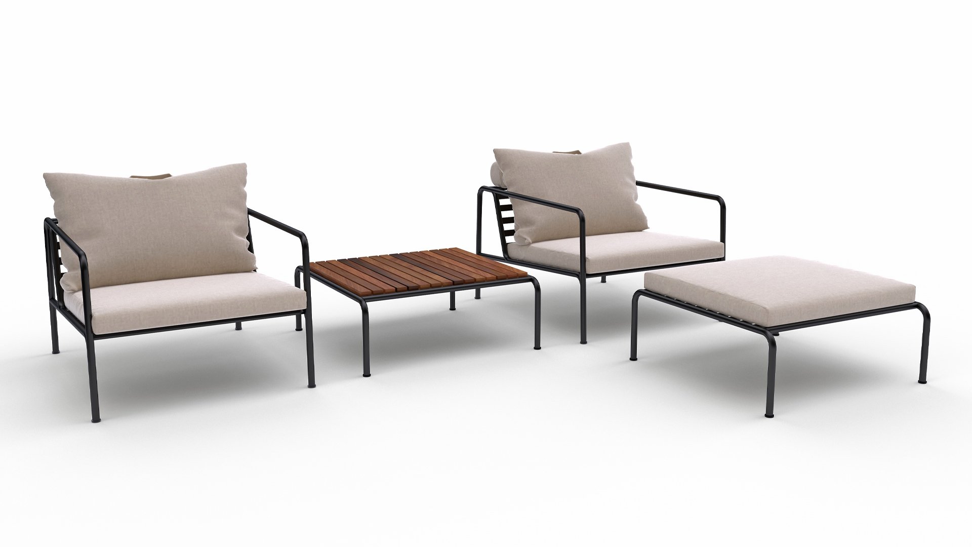 Die HOUE AVON-Kollektion wurde aus dem Wunsch heraus entworfen, etwas mit einem sehr leichten Erscheinungsbild und einem niedrigen, schlanken Profil zu schaffen, während ein hohes Maß an Komfort beibehalten wird. Der wartungsfreie Rahmen und die Konstruktion der großen weichen Rückenkissen ist genau das: die Einfachheit der Struktur, bei der niedrige Linien dafür sorgen, dass das Design immer stolz aussieht, ob mit oder ohne Kissen - Sommer oder Winter. Die Griffe der Kissen sind ein Statement für die Funktion des Produkts und machen sie bei Bedarf leicht zu greifen und zu verstauen.