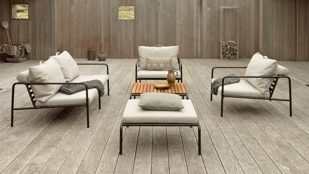 Die HOUE AVON-Kollektion wurde aus dem Wunsch heraus entworfen, etwas mit einem sehr leichten Erscheinungsbild und einem niedrigen, schlanken Profil zu schaffen, während ein hohes Maß an Komfort beibehalten wird. Der wartungsfreie Rahmen und die Konstruktion der großen weichen Rückenkissen ist genau das: die Einfachheit der Struktur, bei der niedrige Linien dafür sorgen, dass das Design immer stolz aussieht, ob mit oder ohne Kissen - Sommer oder Winter. Die Griffe der Kissen sind ein Statement für die Funktion des Produkts und machen sie bei Bedarf leicht zu greifen und zu verstauen.