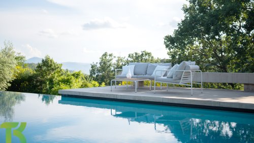 Die Kissen in der Lounge sind mit einem speziellen Outdoor-Stoff mit einer Basis aus Quickdry-Schaum versehen. Dadurch sind die Kissen in kürzester Zeit wieder trocken und es bildet sich kein Schimmel. Die Stoffe sind leicht mit einem milden Reinigungsmittel zu reinigen. Die Kissen sind abnehmbar und bei 30 Grad waschbar.