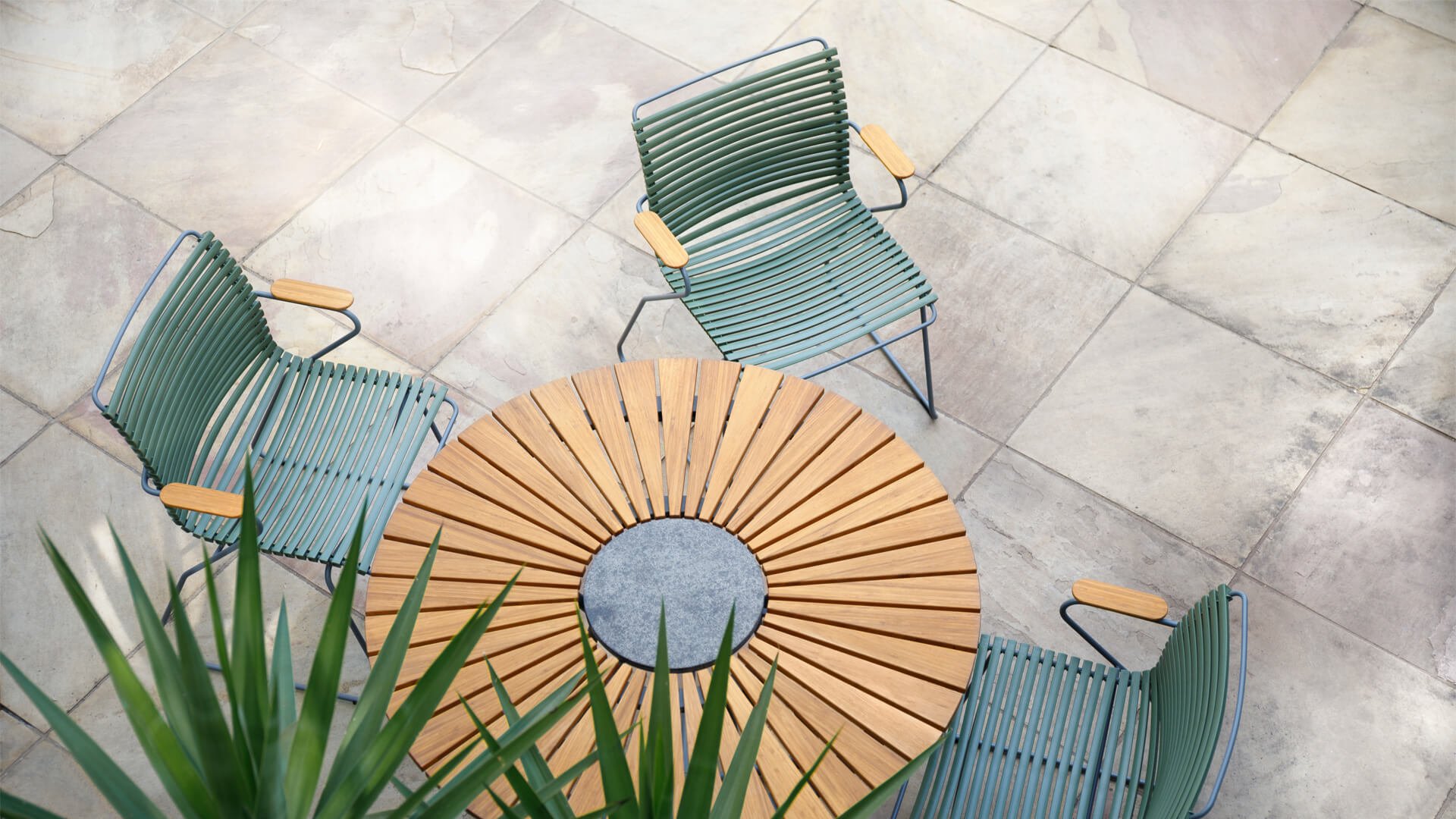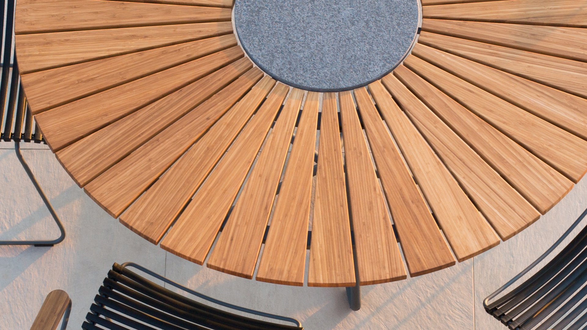 Der Houe Circle ist ein runder Gartentisch mit einer wunderschönen melierten Bambusplatte. Der Circle ist in 2 Größen erhältlich, nämlich 150cm und 110cm. Das Besondere an diesem runden Tisch ist, dass er viel Platz bietet. In der Mitte des Circle-Tisches befindet sich ein Verbundstein. Dies ist praktisch, wenn Sie Ihren heißen Pfannen usw. einen Platz geben müssen. Das skandinavische Design in Kombination mit dem nachhaltigen Bambus sorgt dafür, dass dieser Tisch in jedem Garten zur Geltung kommt. Bambus ist eine schnell wachsende Pflanze und daher nachhaltiger als Teakholz. Wir empfehlen, den Tisch 2-3 Mal im Jahr zu ölen. Wenn der Tisch gut gepflegt wird, hält er sehr lange und behält seine wunderschönen Farben bei.