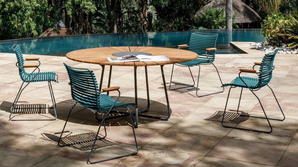 Der Houe Circle ist ein runder Gartentisch mit einer schönen Platte aus gemischtem Bambus. Den Kreis gibt es in 2 Größen, nämlich 150cm und 110cm. Das Schöne an diesem runden Tisch ist, dass er viel Platz bietet. In der Mitte des Kreistisches befindet sich ein zusammengesetzter Stein. Dies ist nützlich, wenn Sie Ihre heißen Pfannen usw. Das skandinavische Design in Kombination mit dem nachhaltigen Bambus sorgt dafür, dass dieser Tisch in jedem Garten gut zur Geltung kommt. Bambus ist eine schnell wachsende Pflanze und daher wesentlich nachhaltiger als Teak. Wir empfehlen den Tisch 2-3 mal im Jahr zu ölen. Wenn der Tisch gut gepflegt wird, hält er sehr lange und behält seine schönen Farben.