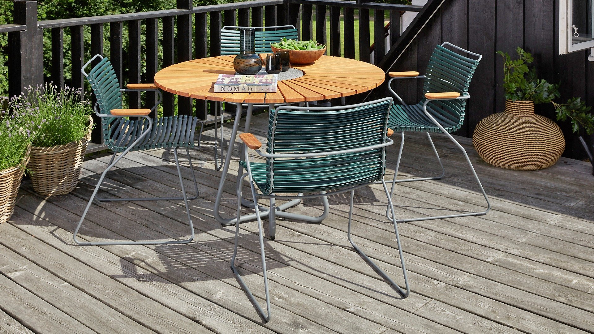 Der Houe Circle ist ein runder Gartentisch mit einer schönen Platte aus gemischtem Bambus. Den Kreis gibt es in 2 Größen, nämlich 150cm und 110cm. Das Schöne an diesem runden Tisch ist, dass er viel Platz bietet. In der Mitte des Kreistisches befindet sich ein zusammengesetzter Stein. Dies ist nützlich, wenn Sie Ihre heißen Pfannen usw. Das skandinavische Design in Kombination mit dem nachhaltigen Bambus sorgt dafür, dass dieser Tisch in jedem Garten gut zur Geltung kommt. Bambus ist eine schnell wachsende Pflanze und daher wesentlich nachhaltiger als Teak. Wir empfehlen den Tisch 2-3 mal im Jahr zu ölen. Wenn der Tisch gut gepflegt wird, hält er sehr lange und behält seine schönen Farben.