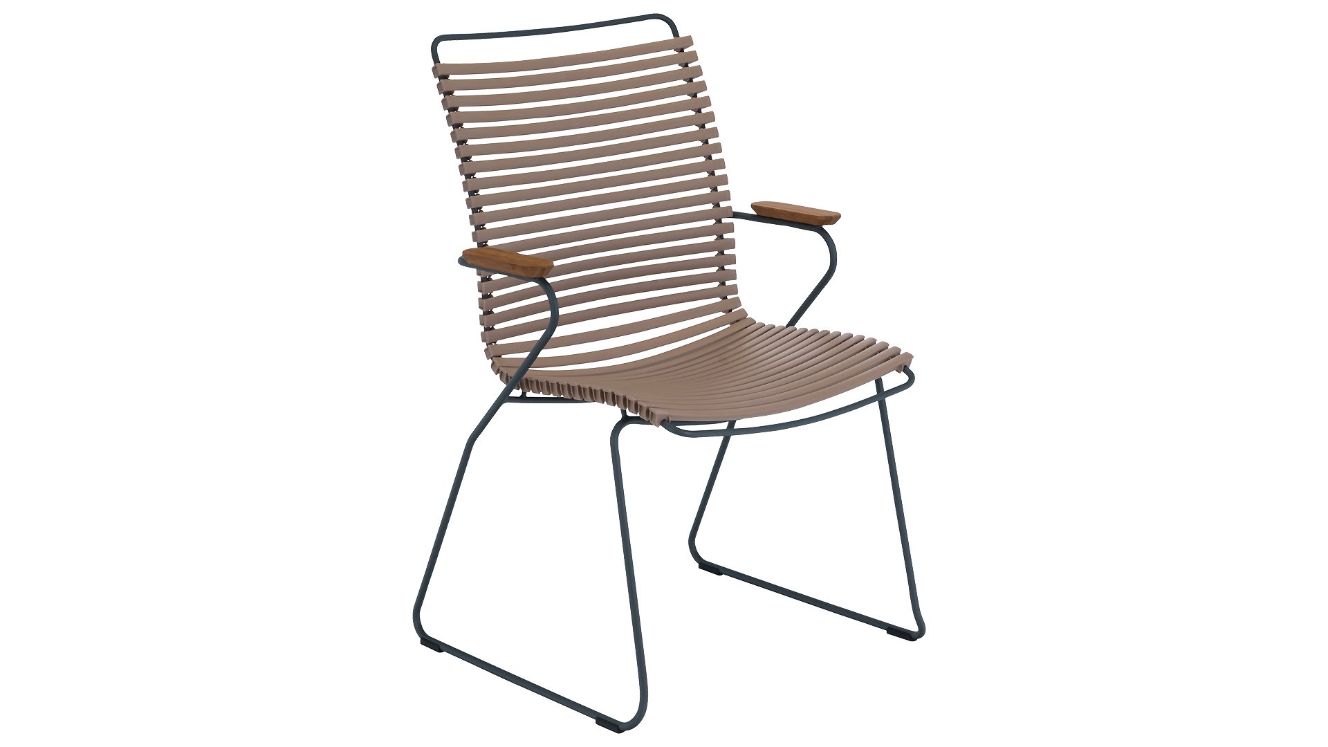 Dieser Gartensessel ist vollständig stapelbar! HOUE CLICK Armchair ist einfach, ehrlich und ergonomisch durchdacht. Dieser Gartensessel hat eine - höhere - Rückenlehne, die sich perfekt an jeden Körper anpasst, die ergonomisch geformte Rückenlehne macht den Stuhl sehr komfortabel zu nutzen, ohne Kissen. Auch erhältlich mit niedriger Rückenlehne (mit oder ohne Armlehnen) oder verstellbar.