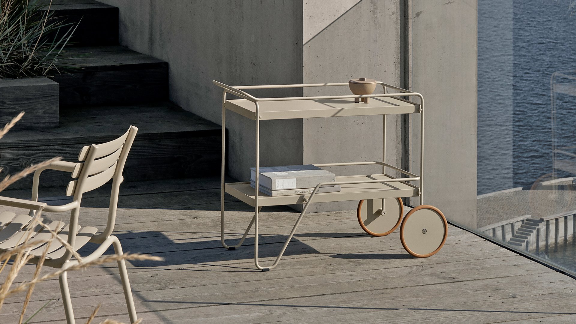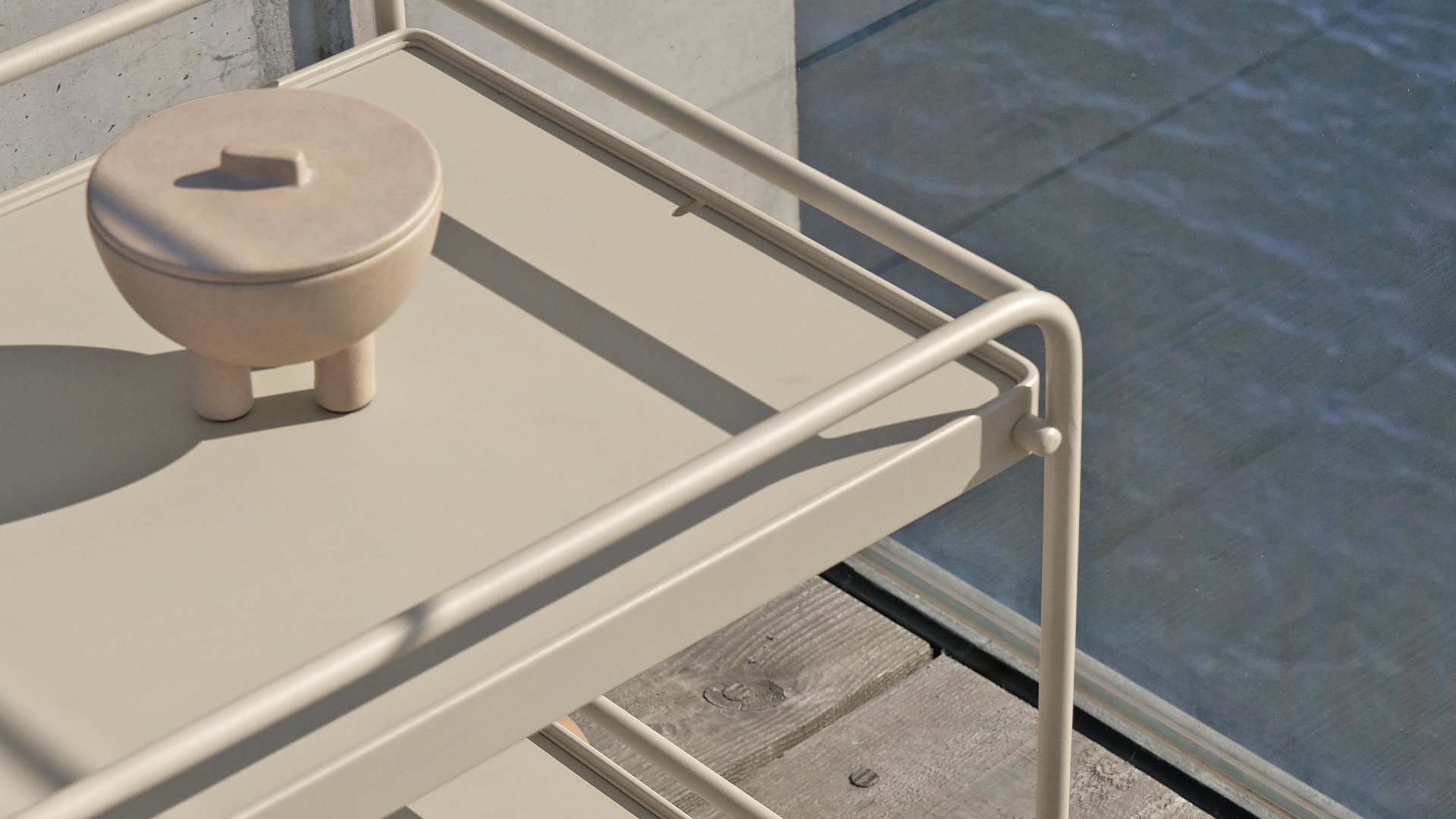 Der stilvolle Servierwagen Click von HOUE vereint dänisches Minimalismus-Design mit außergewöhnlicher Stabilität und bietet eine beeindruckende statische Tragkraft von 100 kg. Sein robustes, pulverbeschichtetes Stahlgestell und die Aluminiumplatte machen diesen Wagen zu einem wetterfesten Blickfang. Erhältlich in Schwarz, Olivgrün und Beige. Ob zum Servieren von Getränken auf der Terrasse oder als mobiler Pflanzenständer – dieses funktionale Designstück wertet jedes Interieur auf.