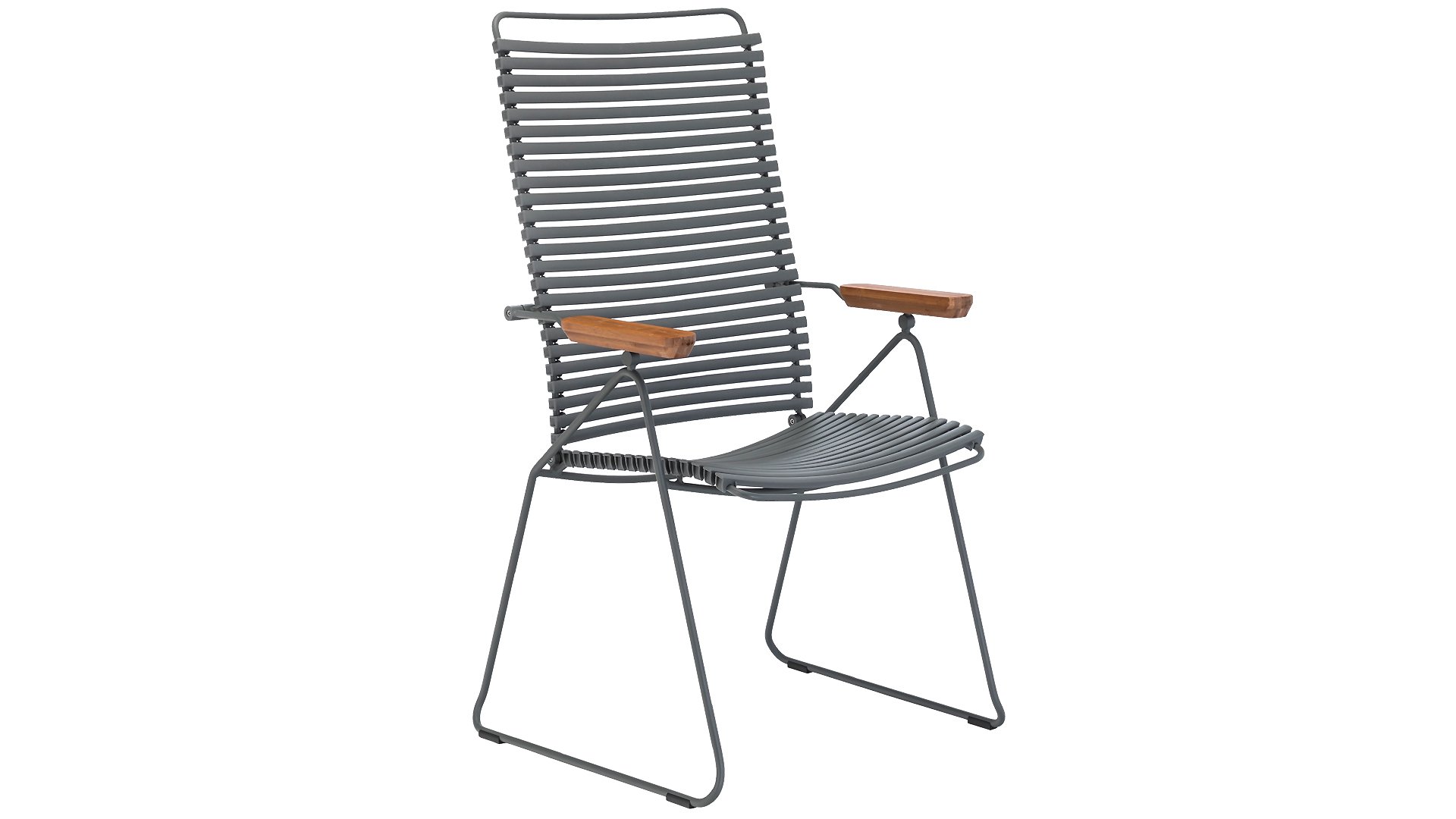 Der verstellbare Click-Gartenstuhl für mehr Komfort! HOUE CLICK Verstellbarer Gartenstuhl ist einfach, ehrlich und ergonomisch durchdacht. Dieser Gartenstuhl hat eine hohe Rückenlehne, die Ihren Rücken ausreichend unterstützt, und die Rückenlehne ist auch verstellbar, was den Stuhl sehr komfortabel zu verwenden macht, auch ohne Kissen.
