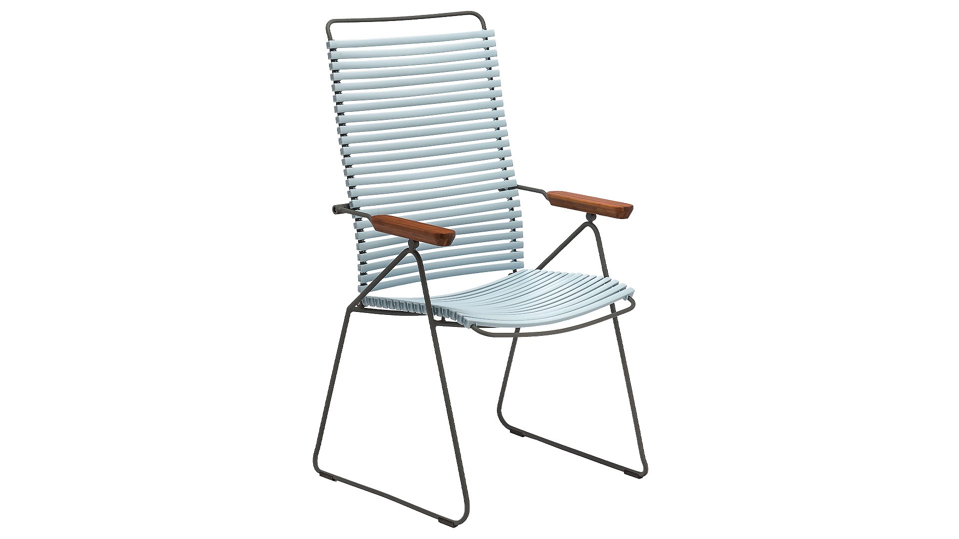 Der verstellbare Click-Gartenstuhl für mehr Komfort! HOUE CLICK Verstellbarer Gartenstuhl ist einfach, ehrlich und ergonomisch durchdacht. Dieser Gartenstuhl hat eine hohe Rückenlehne, die Ihren Rücken ausreichend unterstützt, und die Rückenlehne ist auch verstellbar, was den Stuhl sehr komfortabel zu verwenden macht, auch ohne Kissen.