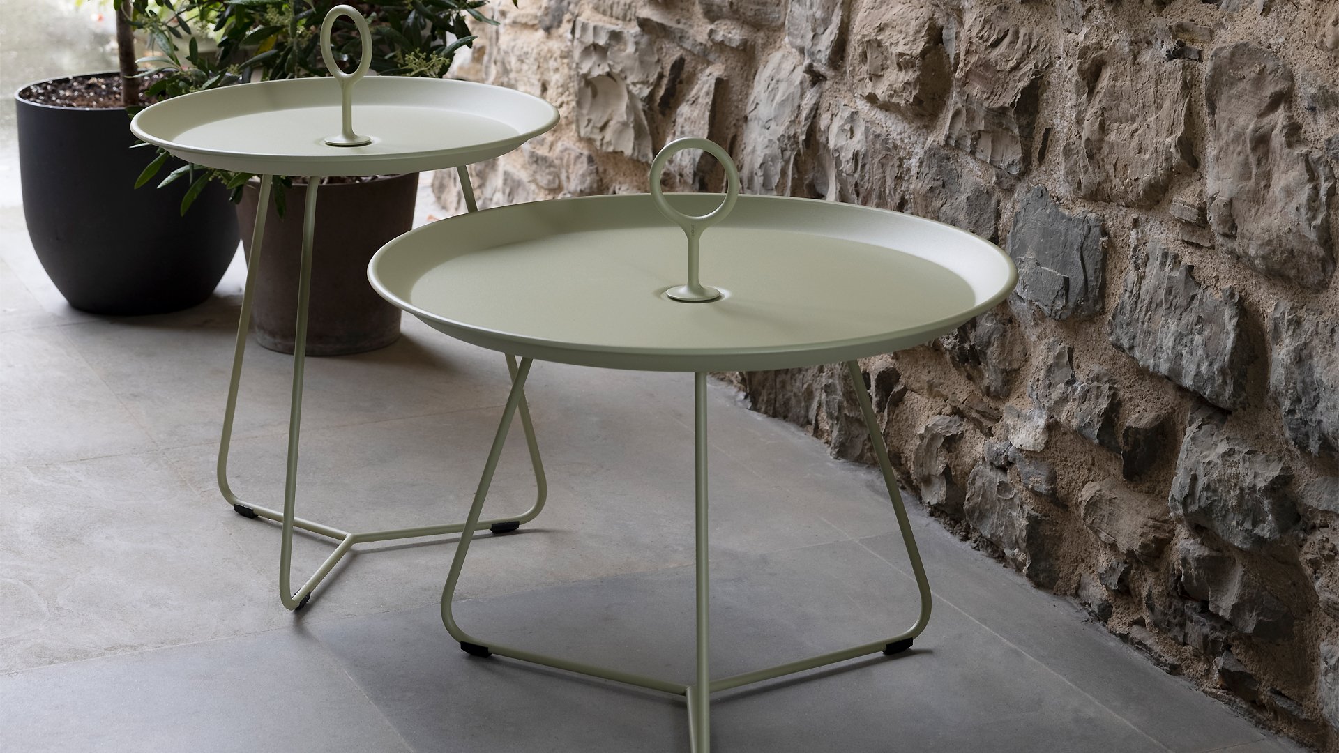 Der HOUE Eyelet ist ein formschöner Couchtisch, der sich auch als Beistelltisch eignet. Seine schlichte Form und das elegante Gestell machen ihn vielseitig einsetzbar. Platzieren Sie ihn neben einer Sitzgruppe oder als Beistelltisch neben einer Liege. Mit dem HOUE Eyelet ist alles möglich. Der Eyelet ist in zwei Größen erhältlich: Ø45x58cm und Ø58x52cm.