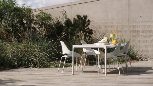 Dieser Gartenstuhl ist seit Jahren ein Erfolg im Innenbereich. Jetzt auch in einer Outdoor-Variante erhältlich. In 3 trendigen Farben: Black, Muted White und Olive Green.