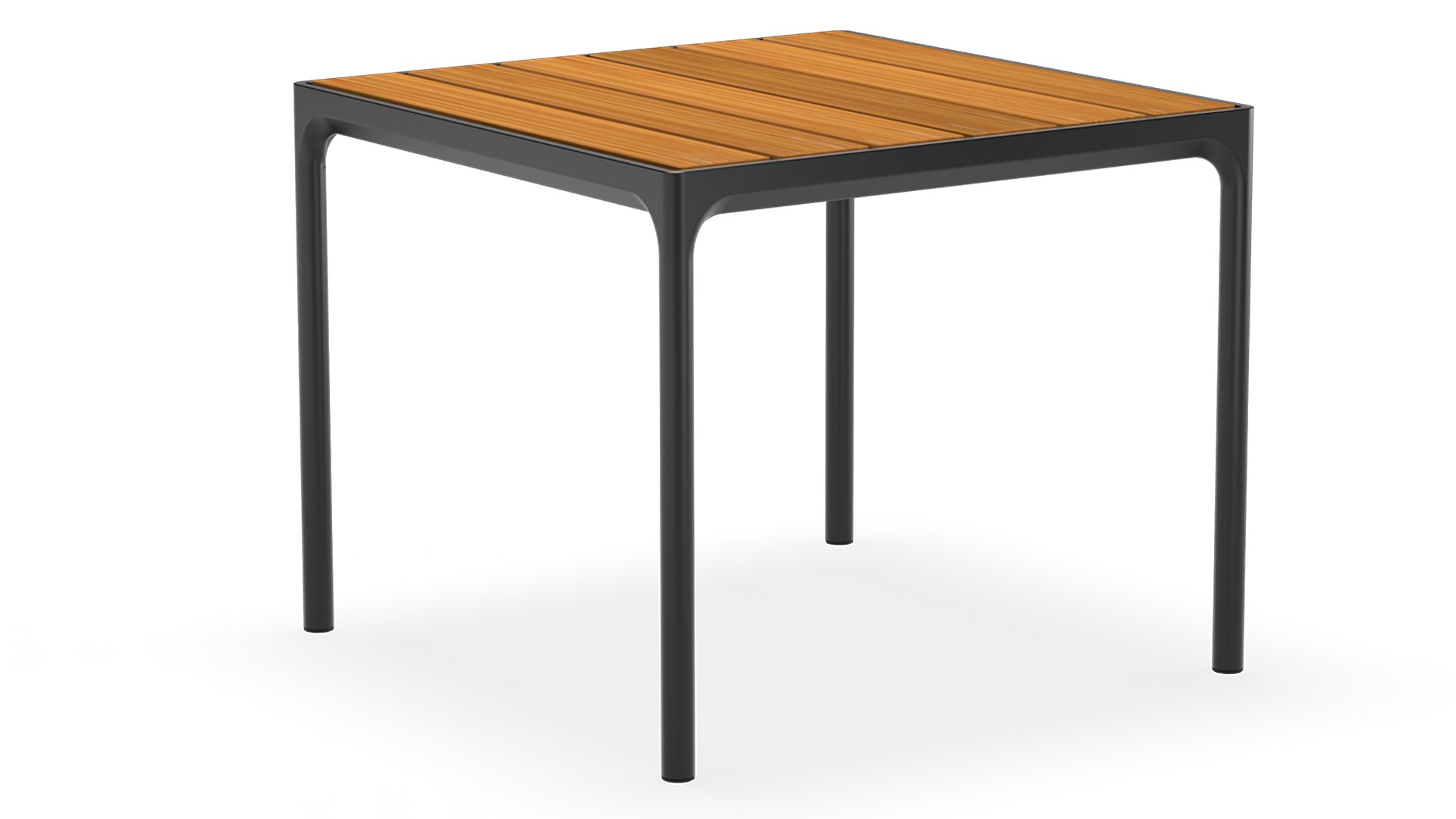 Der Four Tisch von Houe ist ein robustes Modell, das gut in ein industrielles oder rustikales Interieur passt. Der Tisch ist so konzipiert, dass er Wind und Wetter standhält. Der Four Tisch hat ein stabiles Aluminiumgestell, das in pulverbeschichtetem Grau oder Schwarz erhältlich ist. Die Bambus-Tischplatte hat eine Struktur, die sich sehr gut für den Außenbereich eignet. Der Tisch ist in Längen von 90 , 160 , 210 und 270cm erhältlich, alle mit einer Breite von 90cm und einer Höhe von 74cm (Barhöhe 90cm und 160cm ).  Bambus ist eine nachhaltigere Alternative zu Teak. Wir empfehlen jedoch, den Bambus 2-3 Mal pro Jahr mit Öl zu behandeln, damit der Tisch seine warmen Farben länger behält.