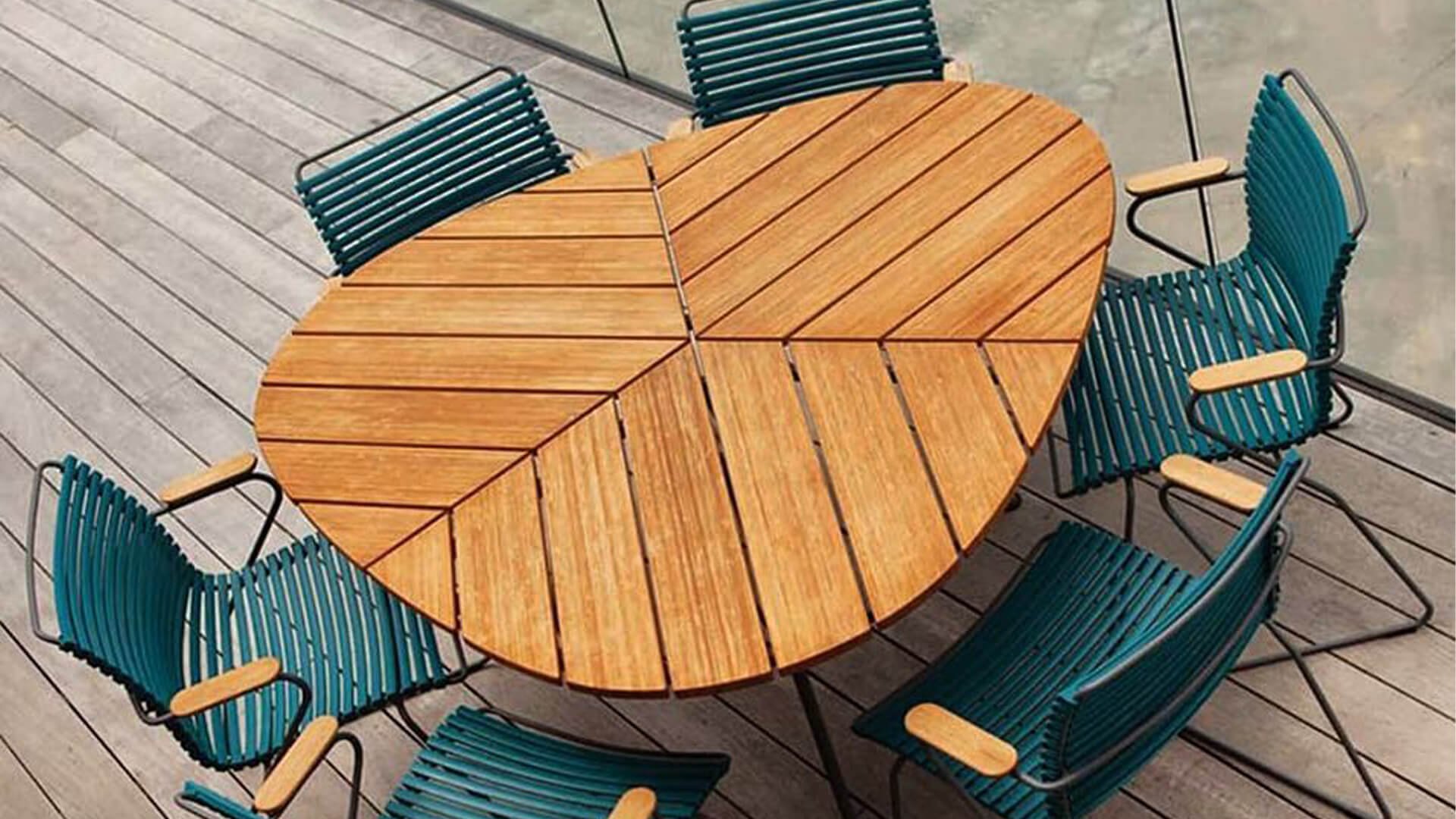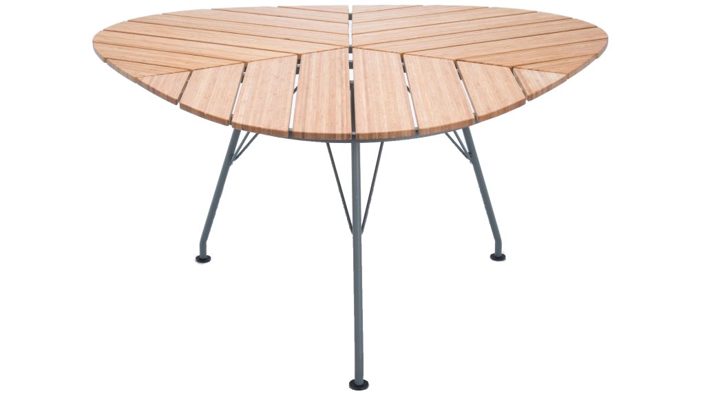 Dieser einzigartige Tisch von Houe trägt seinen Namen zu Recht, die Ähnlichkeit mit einem Blatt ist frappant... Die dreieckige Form und die Platzierung des Gestells ermöglichen es, dass bis zu 9 Personen am Leaf-Tisch Platz finden. Der Leaf-Tisch, entworfen von Henrik Pedersen, ist aus grau pulverbeschichtetem Metall mit einer Tischplatte aus Bambuslamellen gefertigt. Bambus ist eine schnell wachsende Pflanze. Bei richtiger Pflege ist dieses Material nachhaltiger als Teakholz. Wir empfehlen, Bambus 2-3 Mal im Jahr zu ölen, damit der Tisch lange hält und seine warmen Farben behält.