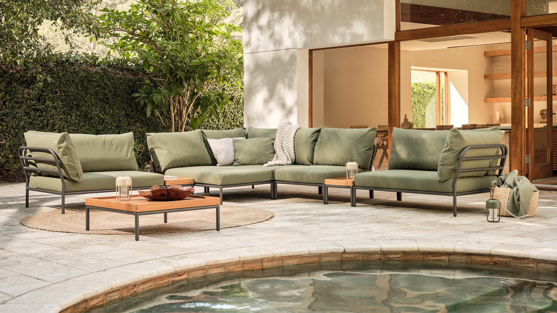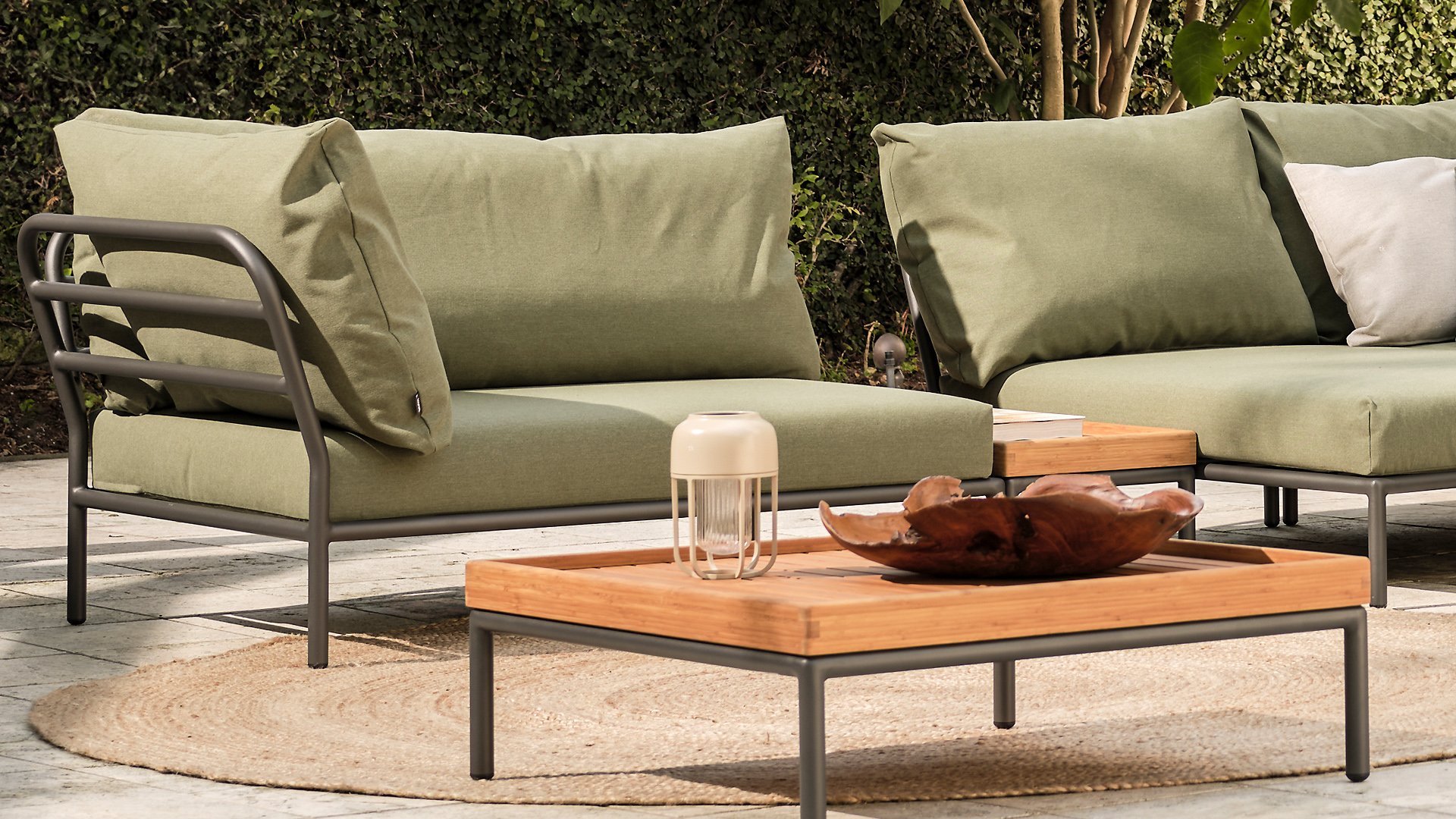 Dieses geräumige, weiche Lounge-Set schreit nach Sonne, Büchern und einem Getränk. Und das größte Plus? Sie können auch bequem mit Ihnen beiden liegen, da die Kissen an den Armlehnen befestigt sind. Wählen Sie also Ihre Lieblingsseite und der Genuss kann beginnen. Die Houe Level Lounge ist eine modulare Lounge-Kombination (Sie können sie selbst zusammenstellen) für den Außenbereich. Die Level Lounge besteht aus verschiedenen Elementen, die viele Kombinationen ermöglichen. Der Lounge-Rahmen besteht aus Aluminium und ist hervorragend pulverbeschichtet. Die Kissen in der Lounge sind mit einem speziellen Outdoor-Stoff mit einer Basis aus Quickdry-Schaum versehen. Dadurch sind die Kissen in kürzester Zeit wieder trocken und es bildet sich kein Schimmel. Die Stoffe sind leicht mit einem milden Reinigungsmittel zu reinigen. Die Kissen sind abnehmbar und bei 30 Grad waschbar.
