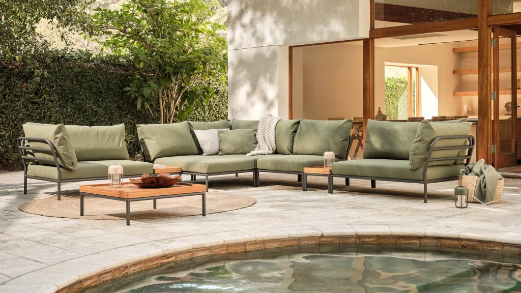 Die Houe Level2 Lounge-Serie hat ein neues Design und eine weichere Füllung der Rückenkissen für ein entspannteres Lounge-Erlebnis, ebenfalls entworfen von Henrik Pedersen.Es geht um Ebene, sich der Natur zu stellen, sich auf den Horizont zu beziehen und Linien und Formen auf die nächste Ebene zu bringen! Der leichte Rahmen und die weichen Kissen schaffen sowohl Kontrast als auch Komfort - und locken mit einer entspannten Lounge-Atmosphäre. HOUE LEVEL ist eine Lounge-Serie, die aus 2 Sofamodulen besteht - einem links und einem rechts - einem einzelnen Stuhl, einer Ottomane, einem Couchtisch und einem Beistelltisch, wodurch die Module auf viele verschiedene Arten kombiniert werden können. Die Heritage Kissen sind aus Sunbrella Heritage-Material hergestellt, das zu 50% aus recyceltem Acryl besteht.