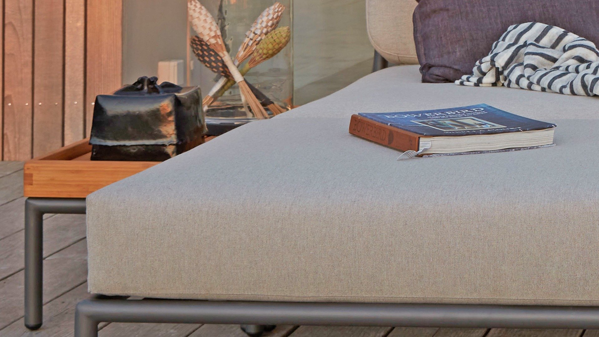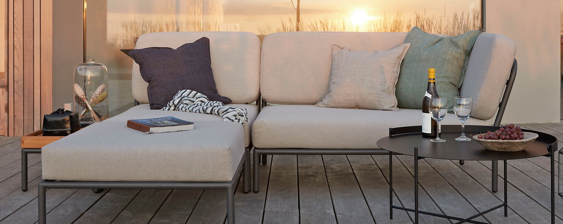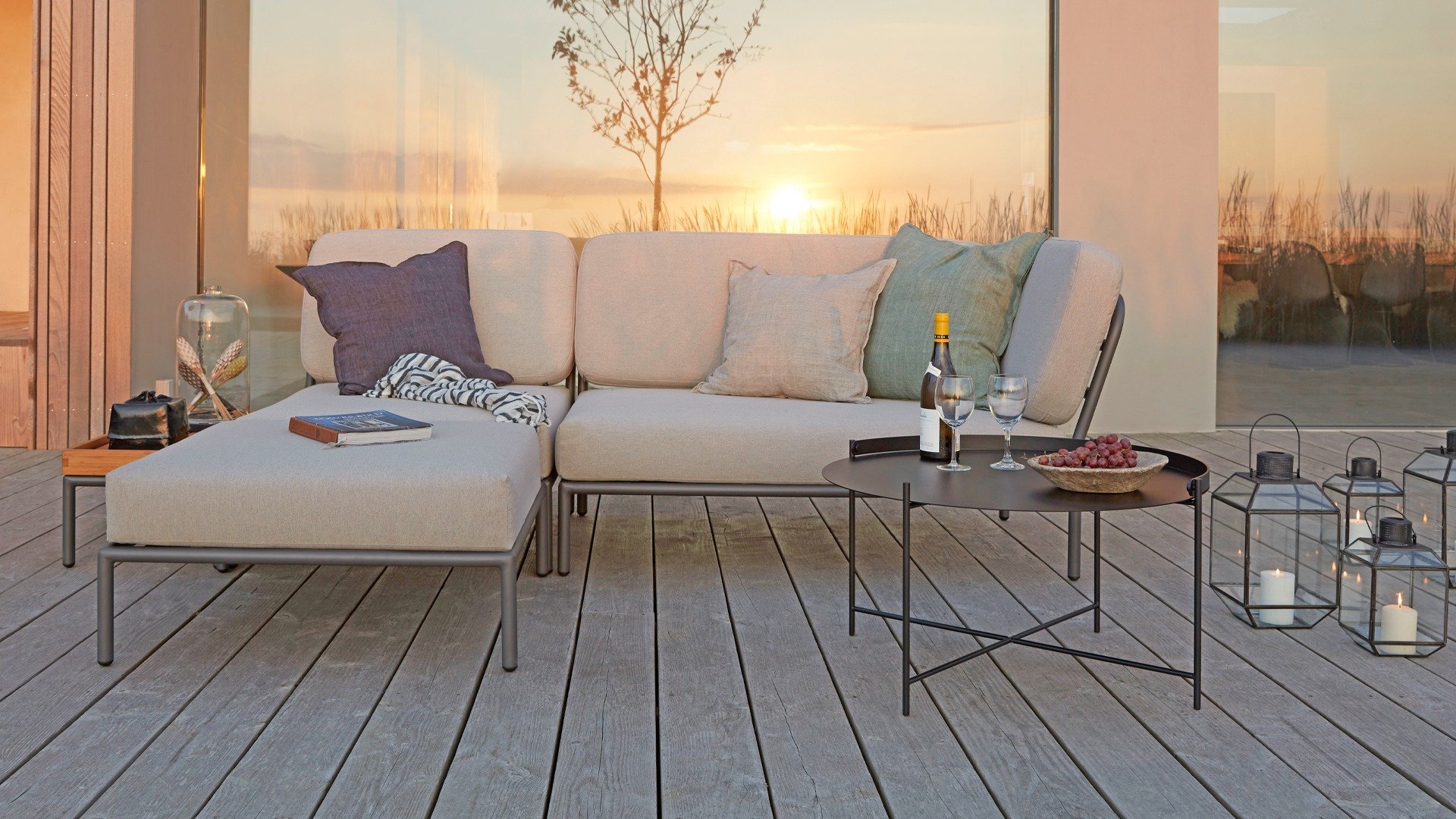 Dieses geräumige, weiche Lounge-Set schreit nach Sonne, Büchern und einem Getränk. Und das größte Plus? Sie können auch bequem mit Ihnen beiden liegen, da die Kissen an den Armlehnen befestigt sind. Wählen Sie also Ihre Lieblingsseite und der Genuss kann beginnen. Die Houe Level Lounge ist eine modulare Lounge-Kombination (Sie können sie selbst zusammenstellen) für den Außenbereich. Die Level Lounge besteht aus verschiedenen Elementen, die viele Kombinationen ermöglichen. Der Lounge-Rahmen besteht aus Aluminium und ist hervorragend pulverbeschichtet. Die Kissen in der Lounge sind mit einem speziellen Outdoor-Stoff mit einer Basis aus Quickdry-Schaum versehen. Dadurch sind die Kissen in kürzester Zeit wieder trocken und es bildet sich kein Schimmel. Die Stoffe sind leicht mit einem milden Reinigungsmittel zu reinigen. Die Kissen sind abnehmbar und bei 30 Grad waschbar.