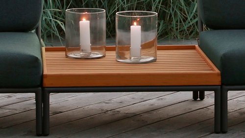 Die Houe Level Lounge, entworfen von Henrik Pedersen. Es geht um Ebene, sich der Natur zu stellen, sich auf den Horizont zu beziehen und Linien und Formen auf die nächste Ebene zu bringen! Der leichte Rahmen und die weichen Kissen schaffen sowohl Kontrast als auch Komfort - und locken mit einer entspannten Lounge-Atmosphäre. HOUE LEVEL ist eine Lounge-Serie, die aus 2 Sofamodulen besteht - einem links und einem rechts - einem einzelnen Stuhl, einer Ottomane, einem Couchtisch und einem Beistelltisch, wodurch die Module auf viele verschiedene Arten kombiniert werden können. Die Kissen in Alpengrün und Esche in Hellgrau / Ecru-Farbe bestehen aus Sunbrella Heritage-Material, das zu 50% aus recyceltem Acryl besteht.