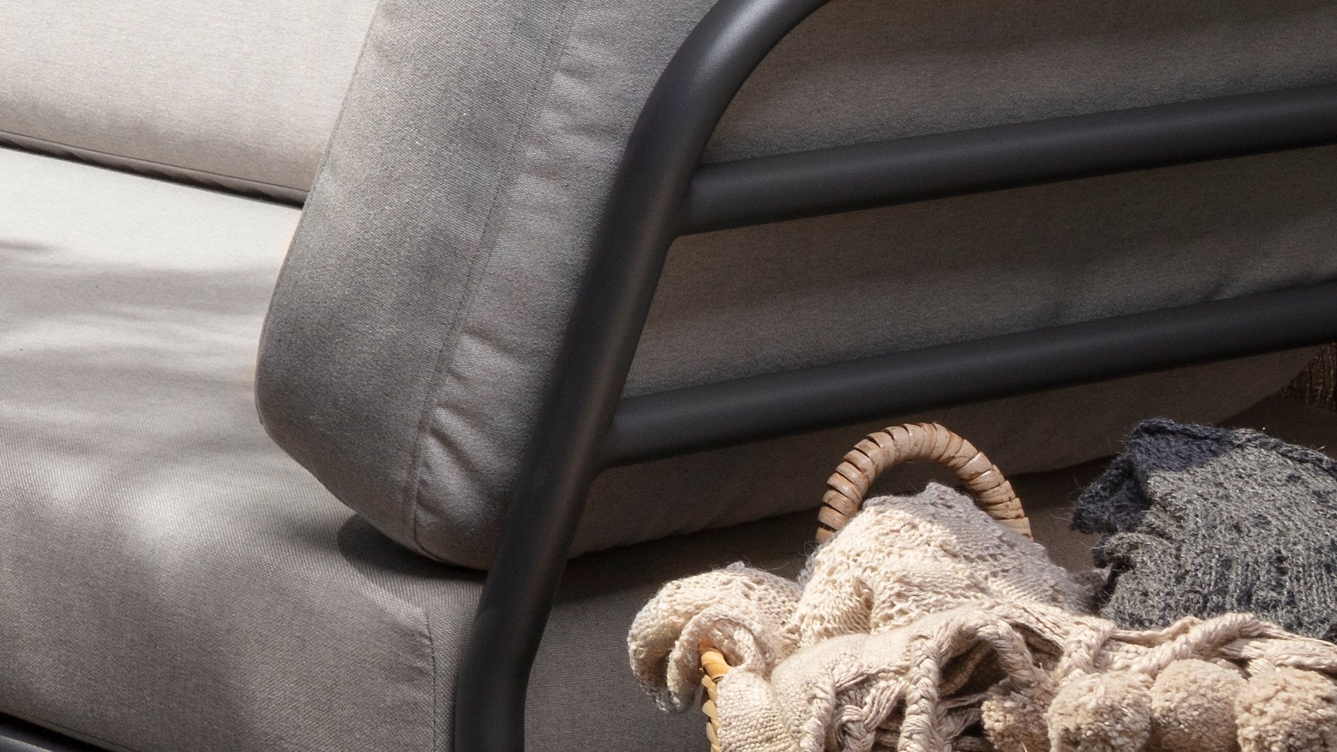 Die Level Lounge besteht aus verschiedenen Elementen, die viele Kombinationen ermöglichen. Der Lounge-Rahmen besteht aus Aluminium und ist hervorragend pulverbeschichtet. Die Kissen in der Lounge sind mit einem speziellen Outdoor-Stoff mit einer Basis aus Quickdry-Schaum versehen. Dadurch sind die Kissen in kürzester Zeit wieder trocken und es bildet sich kein Schimmel. Die Stoffe sind leicht mit einem milden Reinigungsmittel zu reinigen. Die Kissen sind abnehmbar und bei 30 Grad waschbar. Die Kissen in Alpengrün und Esche in Hellgrau / Ecru-Farbe bestehen aus Sunbrella Heritage-Material, das zu 50% aus recyceltem Acryl besteht. Bunte Faserenden aus dem Recycling des Primärmaterials können im Stoff auftreten und die Stofffarbe von Charge zu Charge variieren. Dadurch entsteht ein einzigartiger Stoff mit natürlichem Aussehen und Vintage-Charme. Der Stoff ist Oeko-tex-zertifiziert, wasserabweisend, schmutzabweisend und wartungsfreundlich.