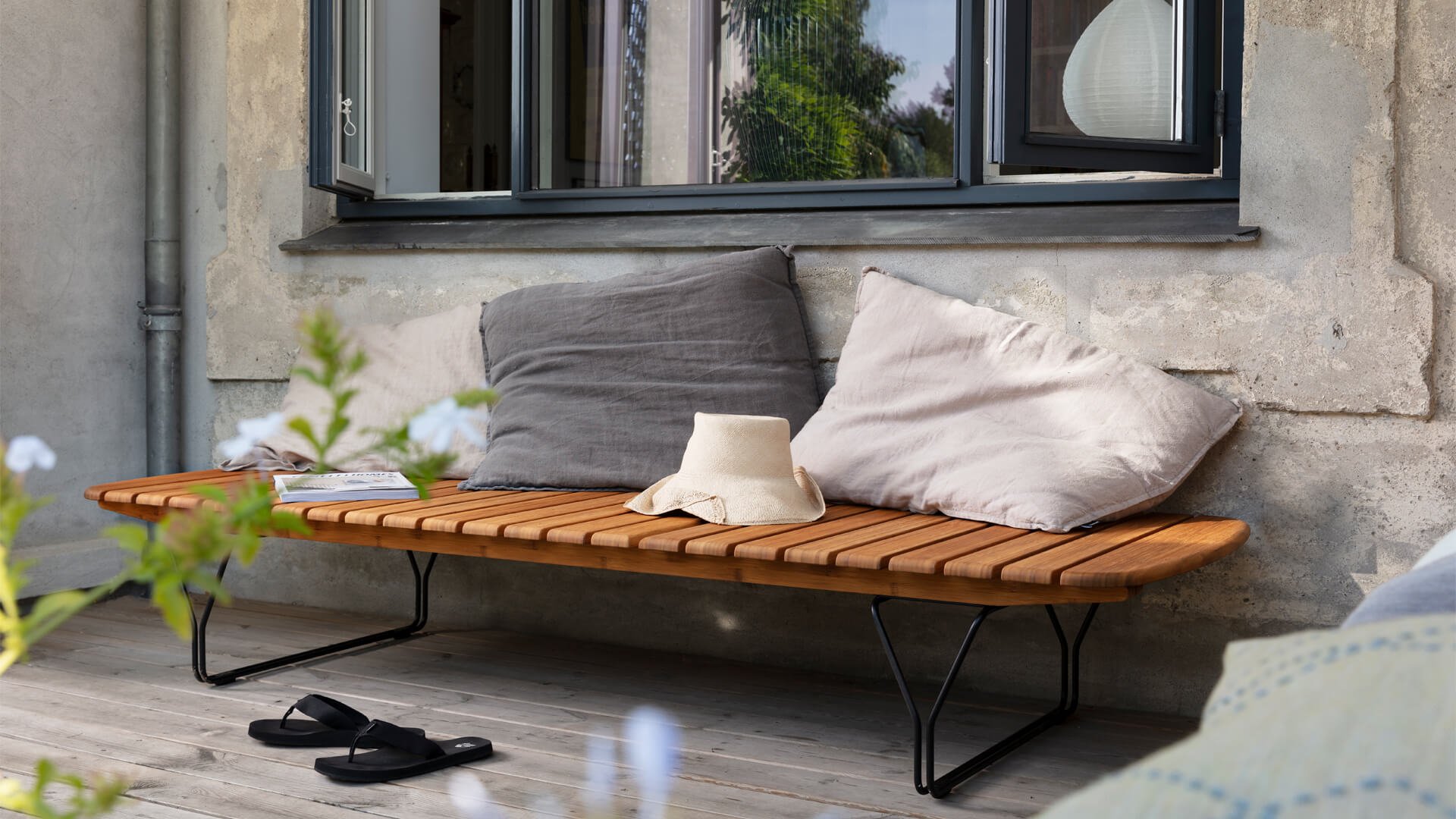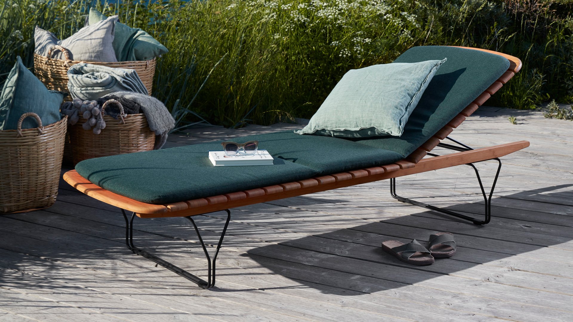 Der HOUE Molo ist ein wahres Juwel von einem Sonnenbett. Das schlanke Design macht sich in jedem Garten großartig. Das Sonnenbett ist aus Bambus gefertigt, mit einem schwarz pulverbeschichteten Stahlgestell. In Kombination mit den qualitativ hochwertigen Sunbrella-Kissen ist dieses Sonnenbett ein echtes Highlight. Das Sonnenbett ist auch mit Rädern erhältlich und die Kissen sind in 3 Farben erhältlich. Sehen Sie sich hier alle Möglichkeiten an!