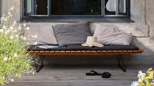 Wasser fließt direkt durch den speziellen Schaum hindurch, während ein weiteres Material, Dacron, dafür sorgt, dass die Kissen ihre originale Form behalten. Die Polster sind ausziehbar und waschbar. Die Kissen in der Lounge sind mit einem speziellen Outdoor-Stoff mit einer Basis aus Quickdry-Schaum versehen. Dadurch sind die Kissen in kürzester Zeit wieder trocken und es bildet sich kein Schimmel. Die Stoffe sind leicht mit einem milden Reinigungsmittel zu reinigen. Die Kissen sind abnehmbar und bei 30 Grad waschbar.Die Kissen in Alpengrün und Esche in Hellgrau / Ecru und Charcoal Farbe sind aus Sunbrella Heritage-Material, das zu 50% aus recyceltem Acryl besteht. Bunte Faserenden aus dem Recycling des Primärmaterials können im Stoff auftreten und die Stofffarbe von Charge zu Charge variieren. Dadurch entsteht ein einzigartiger Stoff mit natürlichem Aussehen und Vintage-Charme. Der Stoff ist Oeko-tex-zertifiziert, wasserabweisend, schmutzabweisend und wartungsfreundlich.