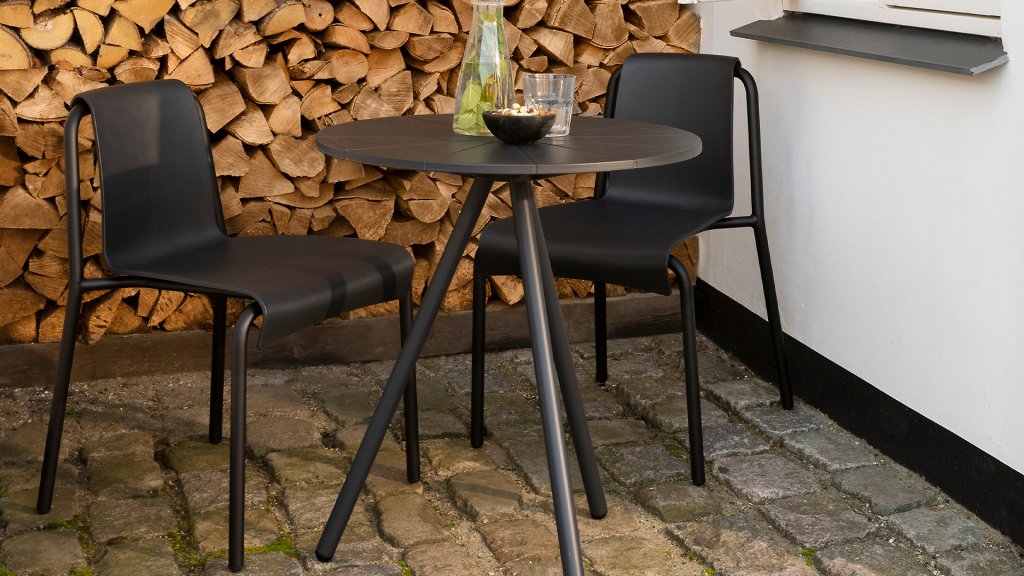 Der NAMI Tisch besteht aus einem pulverbeschichteten Stahlgestell mit einer formschönen Kunststoffplatte Der Stuhl wird in Dänemark hergestellt und besteht zu 97 % aus dänischem Haushaltsplastik und zu 3 % aus Farbpigmenten!
