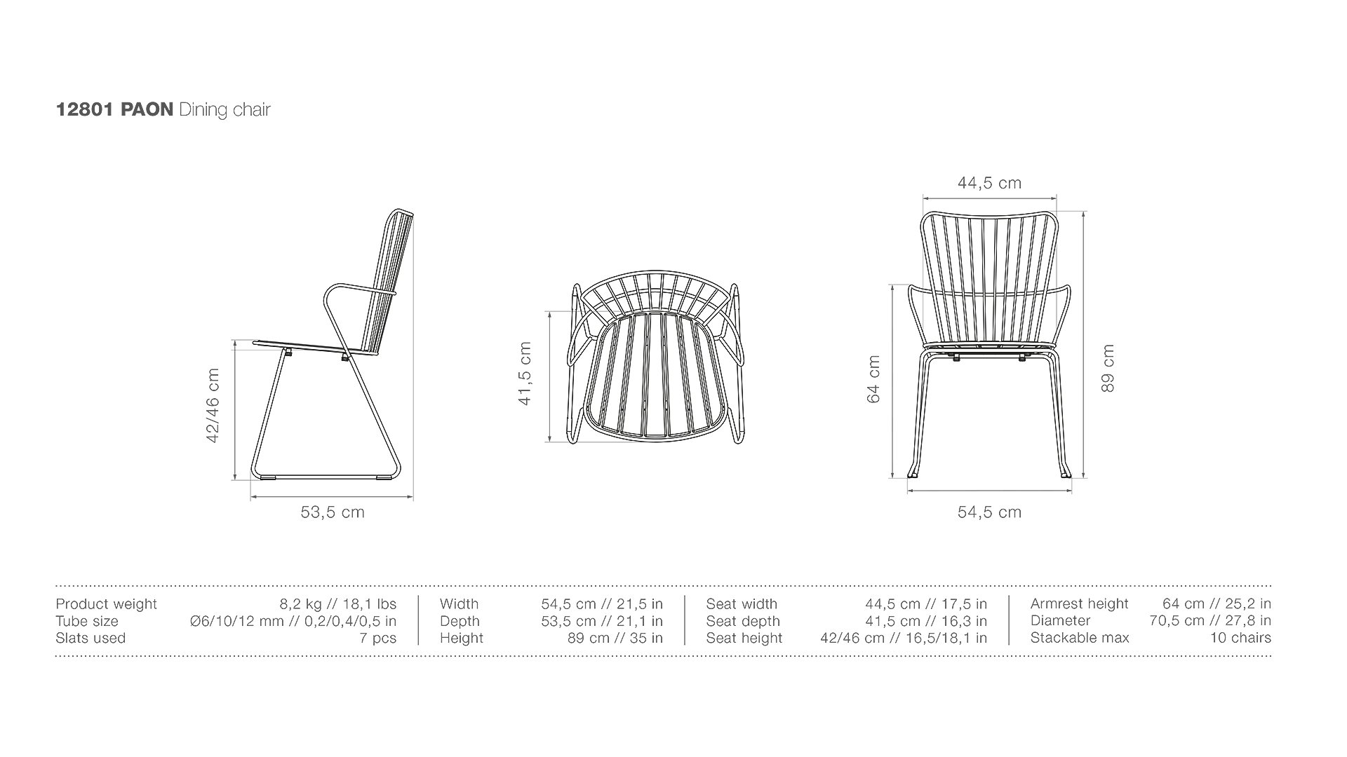 HOUE Paon dining collectie: Ein Sitzkomfort, den Sie von einem Metallstuhl nicht erwarten! Erhältlich als Paon Dining Stuhl und Barhocker! Holen Sie sich Frankreich in den Hinterhof! Das pulverbeschichtete Stahl ist pflegeleicht. Der Stuhl ist stapelbar.