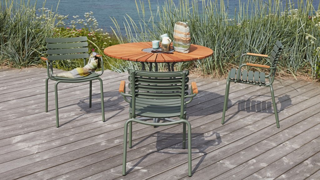 Leichtgewicht mit minimalistischem Design. Hergestellt aus vollständig recyceltem Kunststoff! Der Gartenstuhl wurde von Henrik Pedersen entworfen, einem ursprünglich dänischen Designer, den wir bereits von dem ikonischen Click! Erhältlich in 4 Farben, mit Armlehne aus Bambus oder Aluminium. Auch in Lounge und Rocking Chair verfügbar.
