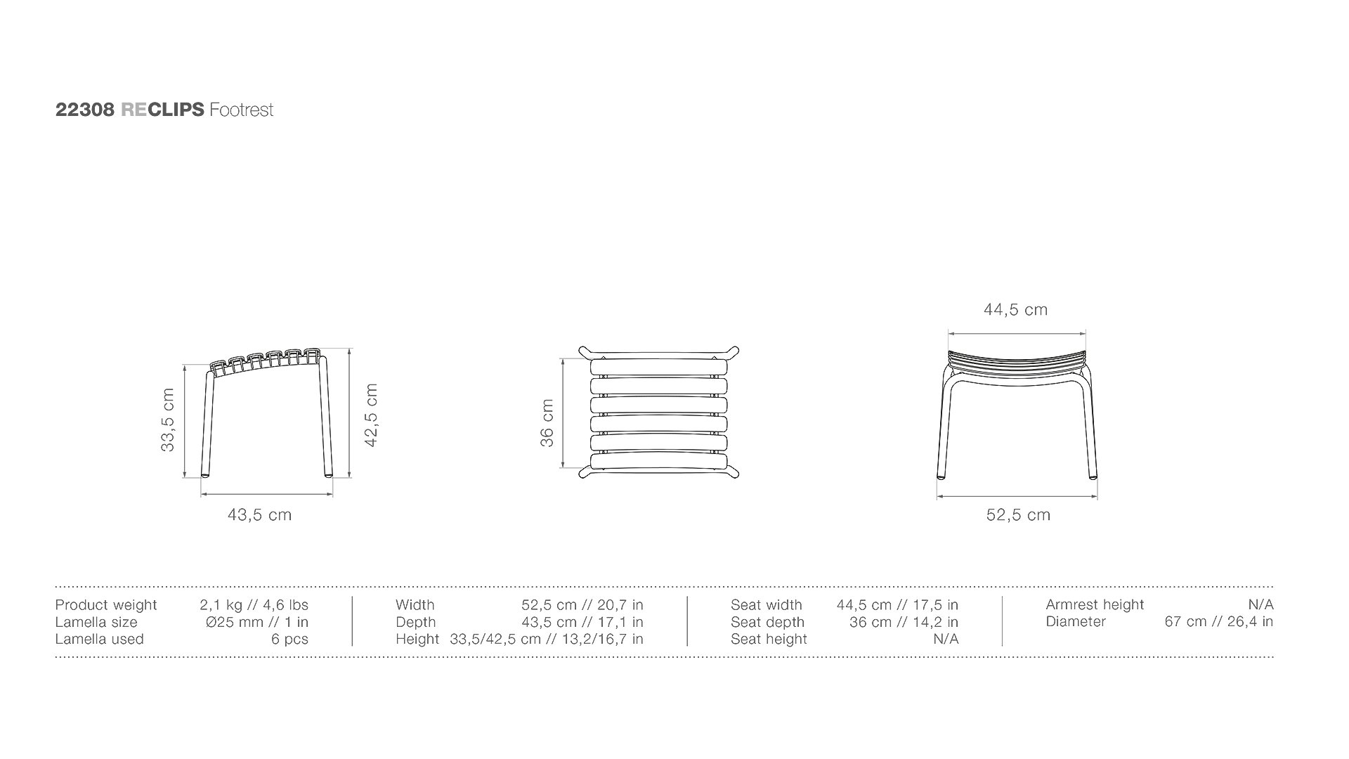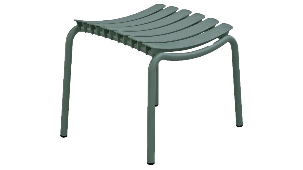 Der Houe Reclips Fußhocker passt zum Reclips Loungestuhl. Der Rahmen besteht aus pulverbeschichtetem Aluminium und die Lamellen sind aus recyceltem Kunststoff.