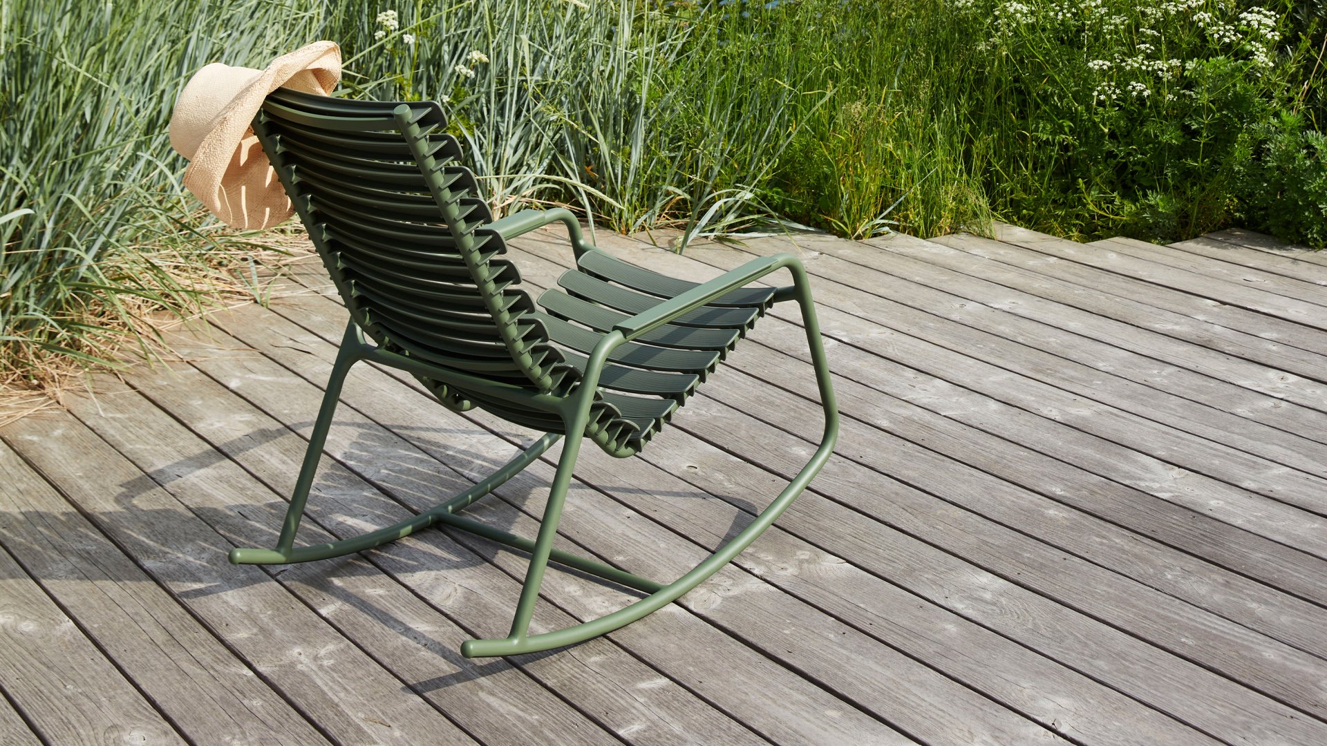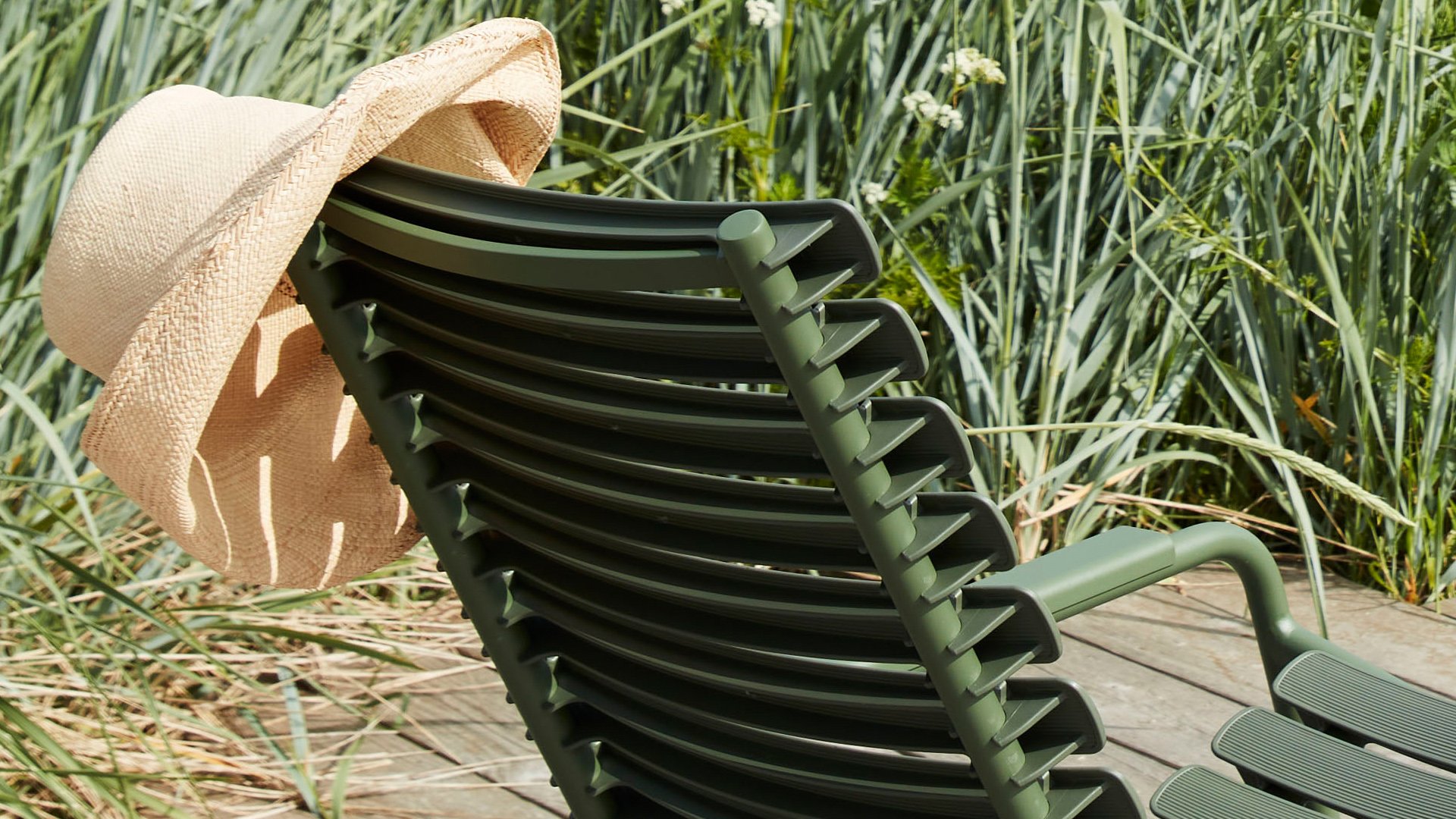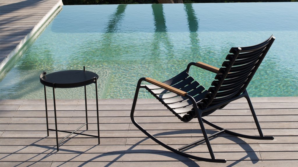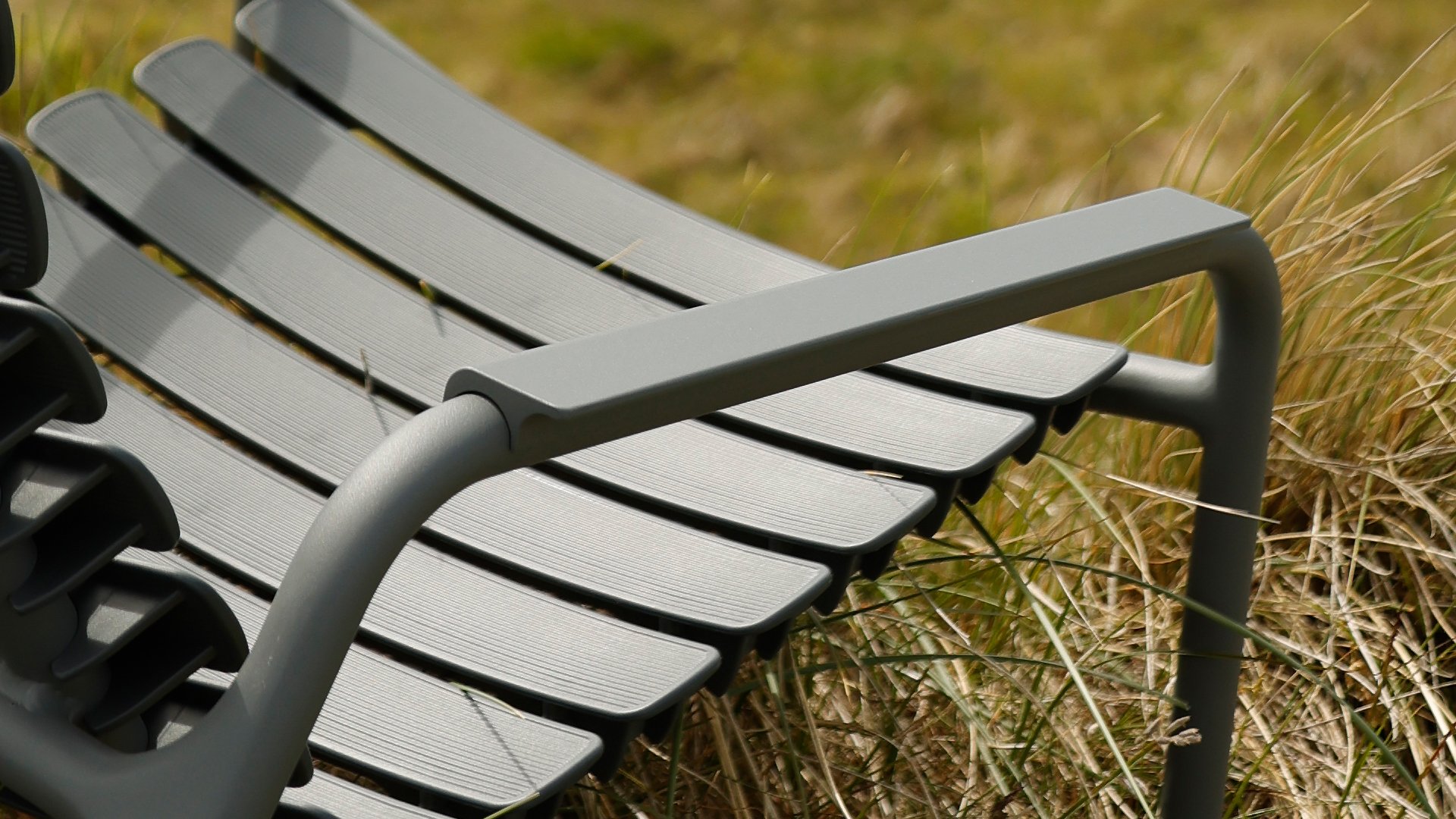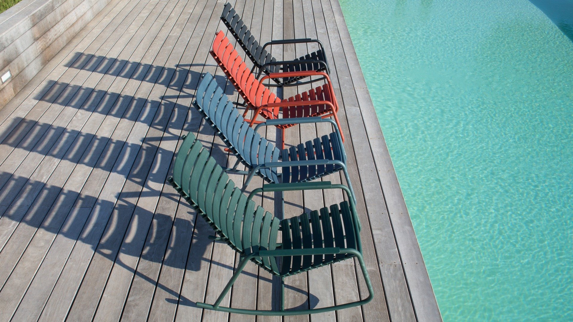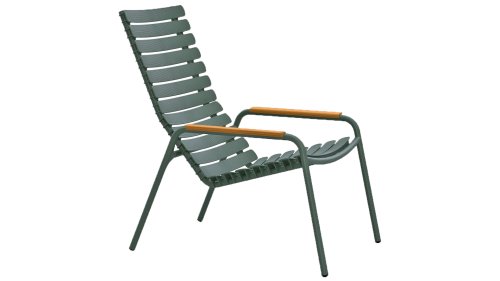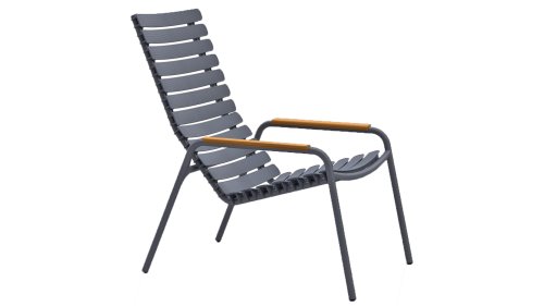 Die ReClips Lounge-Kollektion von HOUE besteht aus clever gestalteten Kunststofflatten, die mit Pulverbeschichtung auf einen Aluminiumrahmen geklipst sind. Die Komponenten der großen Lamellen wurden sorgfältig zusammengebaut, um genau die richtige Festigkeit und Elastizität zu gewährleisten. Das Aluminium in Kombination mit dem UV-geschützten Kunststoff reduziert die Wartung auf ein Minimum. THE HOUE ReClips wurde mit Blick auf Komfort entwickelt und so geformt, dass Sie einen hervorragenden, kissenfreien Komfort erhalten, sodass Sie sich stundenlang entspannen können. Ein stilvoller Stuhl mit nachhaltigem Charakter. So lassen sich die ReClips-Stühle mit Bambusarmlehnen oder Aluminium der dänischen Marke HOUE am besten beschreiben. Die breiten Lamellen von ReClips werden aus Kunststoffabfällen hergestellt und in Dänemark hergestellt. Dies bedeutet, dass nicht nur Material wiederverwendet wird, sondern auch während des Produktionsprozesses eine erhebliche Menge an Energie eingespart wird. ReClips ist nicht nur nachhaltig, sondern auch eine Augenweide.