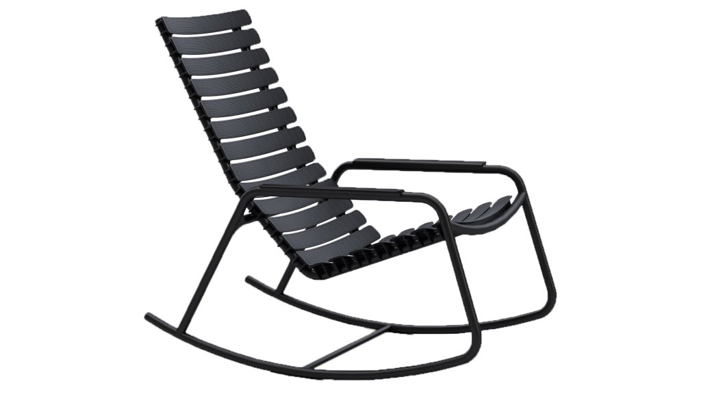 Die HOUE Reclips-Serie besteht aus recyceltem Kunststoff. In Kombination mit dem pulverbeschichteten Aluminiumrahmen ist dies ein pflegefreier Loungesessel. Die ergonomisch geformte Rückenlehne macht den Stuhl sehr komfortabel zu verwenden, ohne Kissen. In dieser Serie sind auch ein Barhocker, Gartenstuhl und ein Schaukelstuhl erhältlich.