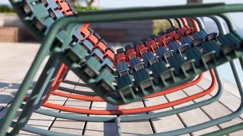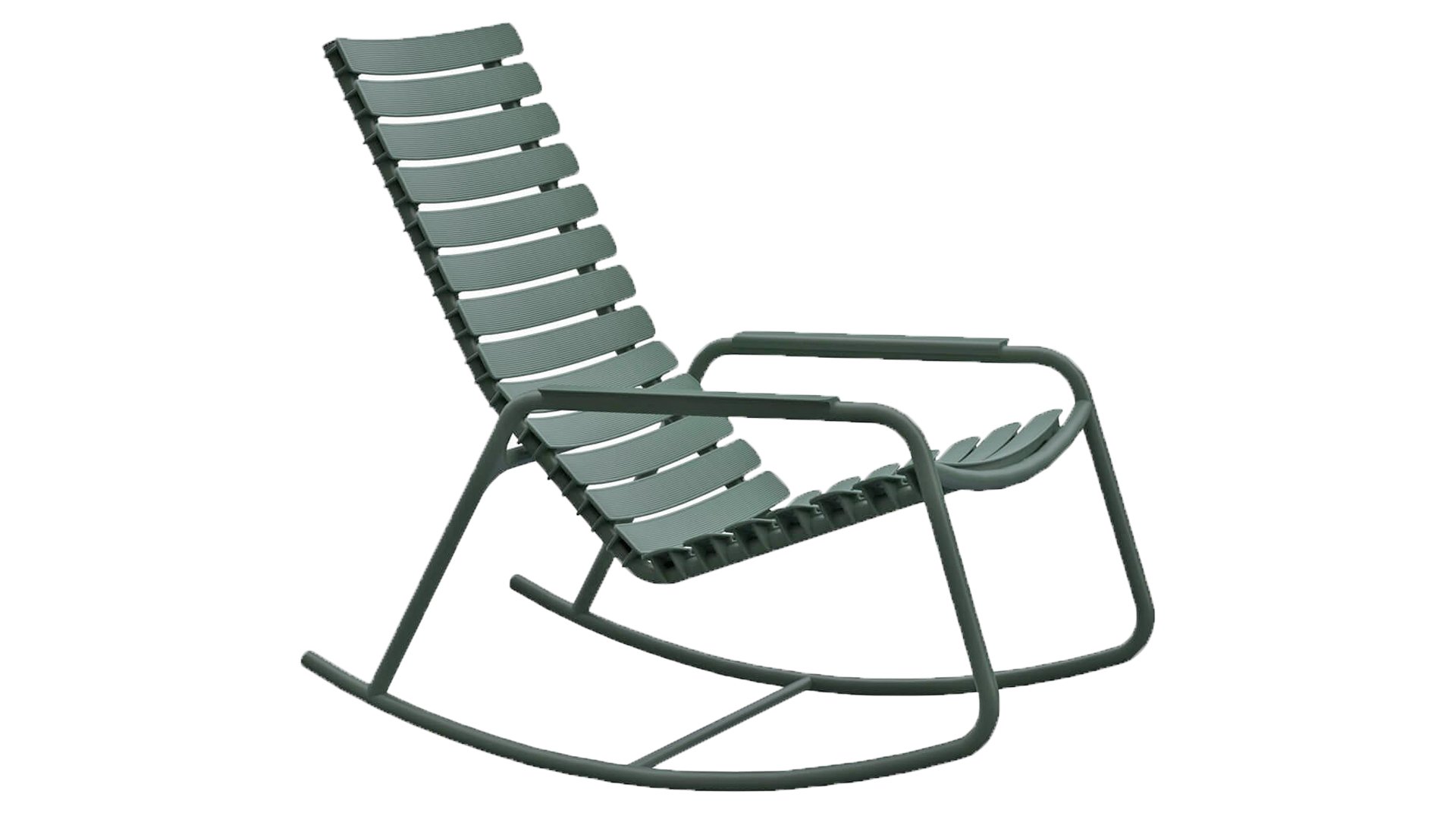 Die HOUE Reclips-Serie besteht aus recyceltem Kunststoff. In Kombination mit dem pulverbeschichteten Aluminiumrahmen ist dies ein pflegefreier Loungesessel. Die ergonomisch geformte Rückenlehne macht den Stuhl sehr komfortabel zu verwenden, ohne Kissen. In dieser Serie sind auch ein Barhocker, Gartenstuhl und ein Schaukelstuhl erhältlich.