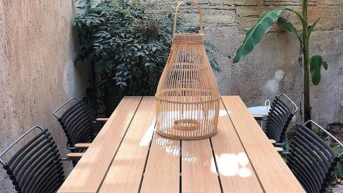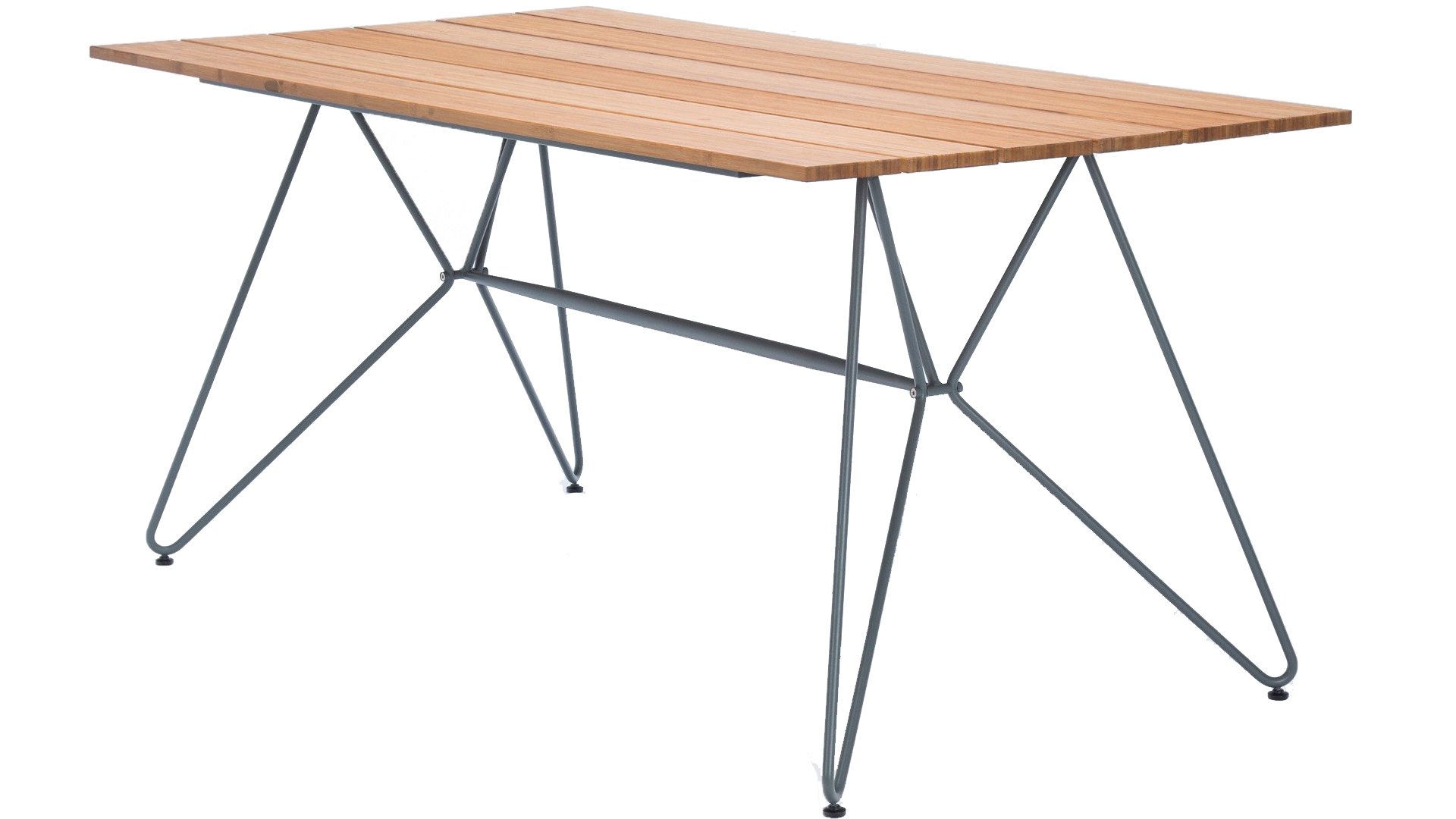 Houe Sketch Gartentisch mit einer Bambusplatte. Dieser wunderschöne minimalistische Gartentisch der dänischen Designmarke Houe ist in 2 Längen erhältlich: 160cm und 220cm. Das Gestell ist aus Stahl in Kombination mit einer speziellen Pulverbeschichtung gefertigt, was den Tisch für den Außenbereich geeignet macht. Dieser Tisch passt perfekt zu den Click Dining Gartenstühlen von Houe, der Rahmen ist in derselben Farbe wie der Rahmen der Stühle. Da Bambus viel schneller wächst, ist er eine nachhaltige Alternative zu Teakholz. Bambus sollte 2-3 Mal im Jahr geölt werden, um seine schöne warme Farbe zu erhalten.