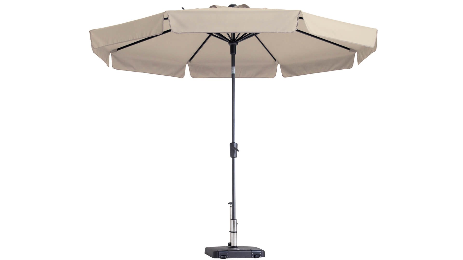 Mit einem Topline-Sonnenschirm sind Sie von Qualität versichert. Topline-Sonnenschirme sind mit einem 220-Gramm-Sonnenschirmstoff aus 100 % Polyester mit wasserabweisender PA-Beschichtung ausgestattet. Das Tuch bietet auch UV-Schutz mit einem UPF-Wert von 50+ und einer Garantie von 2.000 Sonnenstunden. Also, genießen Sie sorgenfrei! Dieser Sonnenschirm ist neigbar, um auch die tiefstehende Sonne zu blockieren.