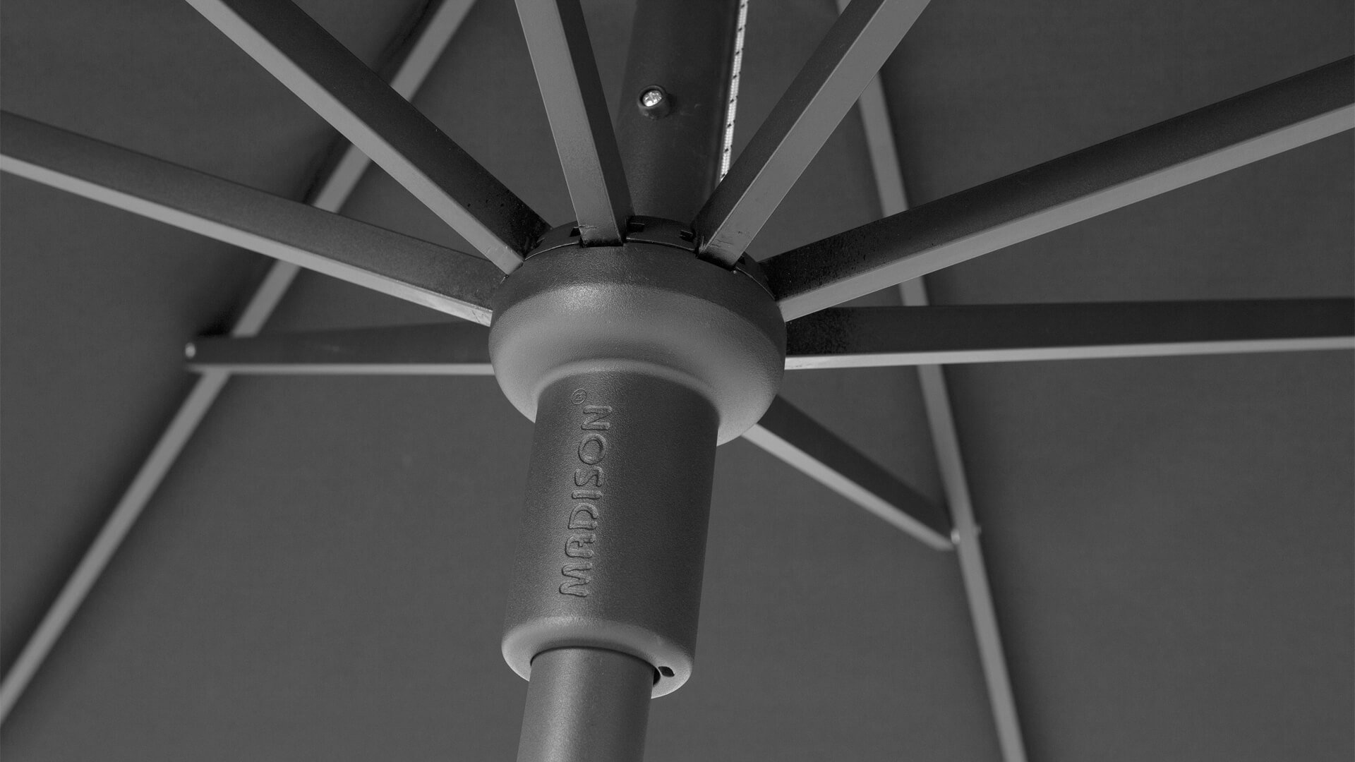 Polyester ist in vielen verschiedenen Qualitätsklassen erhältlich. Polyester der Staubklasse 2 werden in den Sonnenschirmen von Madison verwendet, was bedeutet, dass die Polyesterfasern nur nach der Herstellung und nicht während der Herstellung des Gewebes glasiert werden. Daher ist es besser, die ganze Saison nicht ungeschützt draußen zu lassen. Verwenden Sie eine Schutzabdeckung, um zu verhindern, dass sich das Tuch verfärbt oder verschmutzt. Polyester ist ein fester Materialtyp und trägt sich kaum ab. Bei einem kleinen Regenschauer bleibt man trocken unter einem Sonnenschirm aus Polyester. Es ist jedoch zu beachten, dass kein Sonnenschirm vollständig wasserdicht ist und daher nicht als Regenschirm fungieren kann.