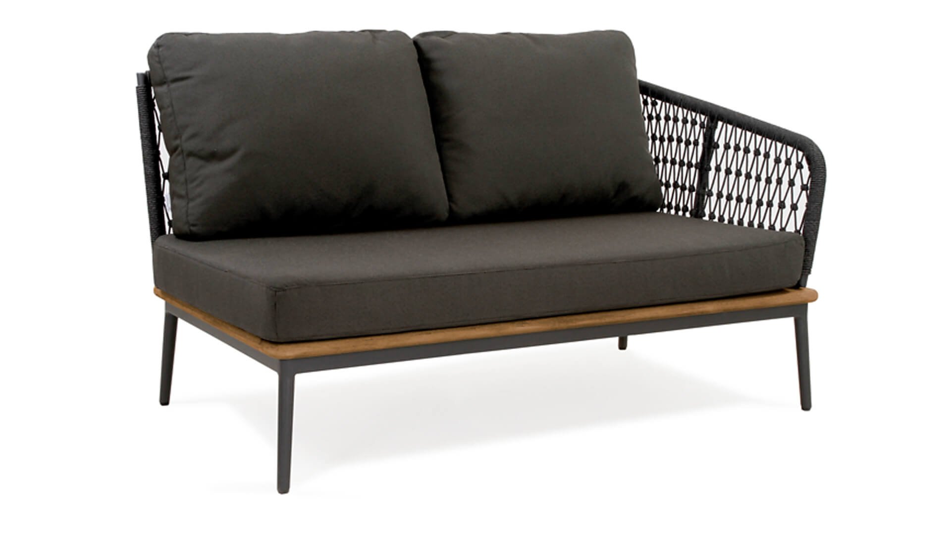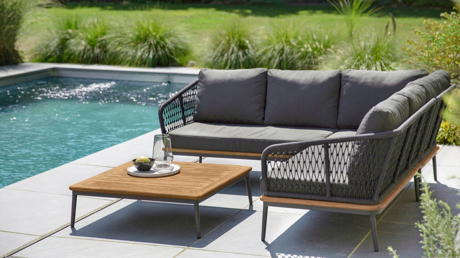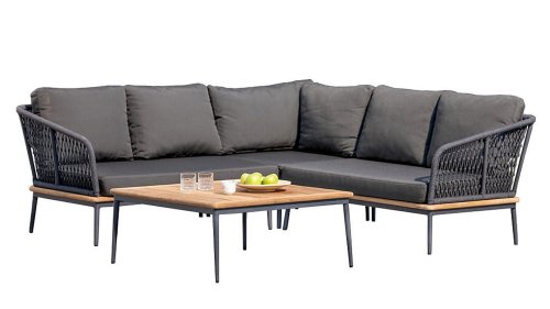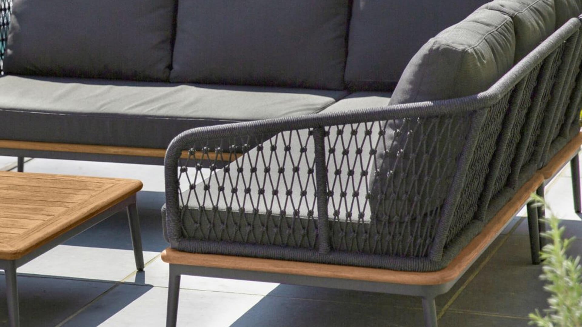 Weiche, gerundete Formen und Proportionen sowie eine außergewöhnliche Kordelflechtung zeichnen die Loungegruppe Freeeport aus dem Hause Niehoff Garden aus. Ein optisches Highlight bildet die besondere Art der Kordelflechtung in Kombination mit Gestell aus Aluminium und Teakholz. Das Modulsystem Freeport bietet einen hohen Grad an Flexibilität, so lässt sich durch das modulare Elementsystem mühelos eine individuelle, für Sie passende Zusammenstellung bilden.