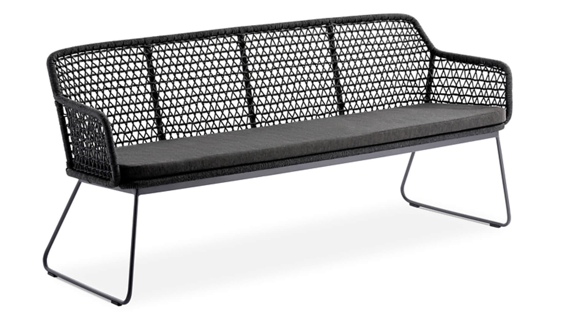 Maximaal zitcomfort om ontspannen te ontspannen en te eten is het motto, dat de Niehoff Garden KUBU tuinstoel met gemak vervult! Een moderne bank is de Niehoff KUBU bank. Het afgeronde aluminium frame van de rugleuning en armleuningen is bekleed met fraaie gevlochten koorden in een ruitpatroon.
