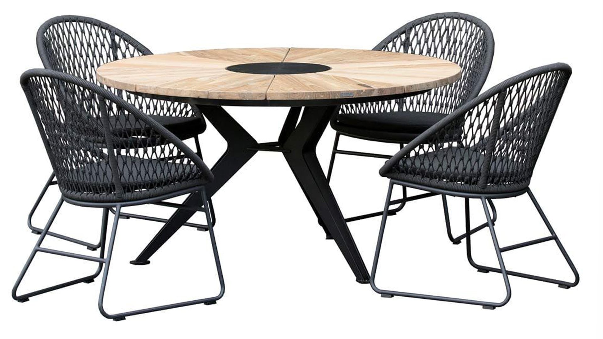 1 x Niehoff Nexor tafel Ø 140cm Teak gebürstet-Stahl pulverbeschichtet
