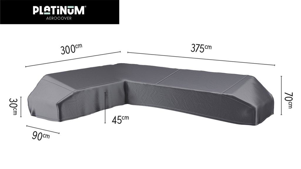 1 x Platinum AeroCover Schutzhülle Loungeset 375x300x90xH30/45/70 Links L-Form mit 90 Grad Winkel