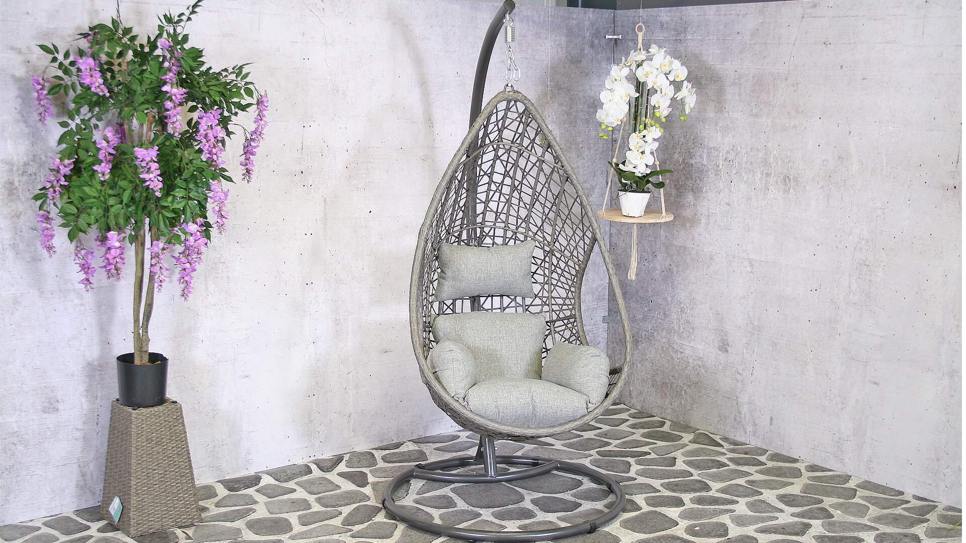 Durch den Ständer können Sie den Stuhl leicht bewegen und überall im Garten platzieren, im Schatten, in der Sonne, auf der Veranda oder auf Ihrer Terrasse. Das Ei kann mithilfe der Stahlkette höher oder niedriger gehängt werden.