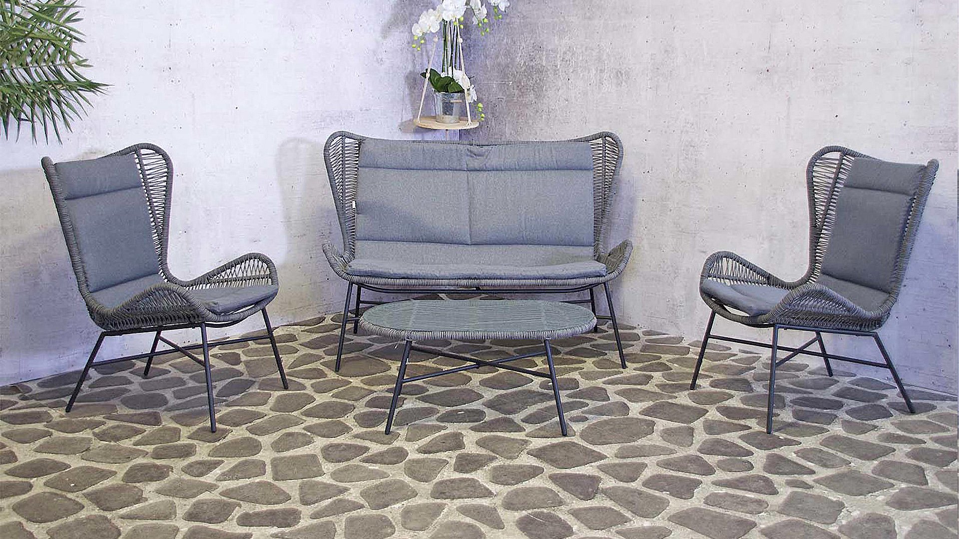 Das SenS-Line Rom Loungeset hat einen Rope-Draht in einer schönen melierten natürlichen Farbe. Der SenS Rom ist ein trendiges Loungeset mit hervorragendem Sitzkomfort. Durch die schlanken Beine hat das Rom Loungeset einen „luftigen“ und schicken Charakter.