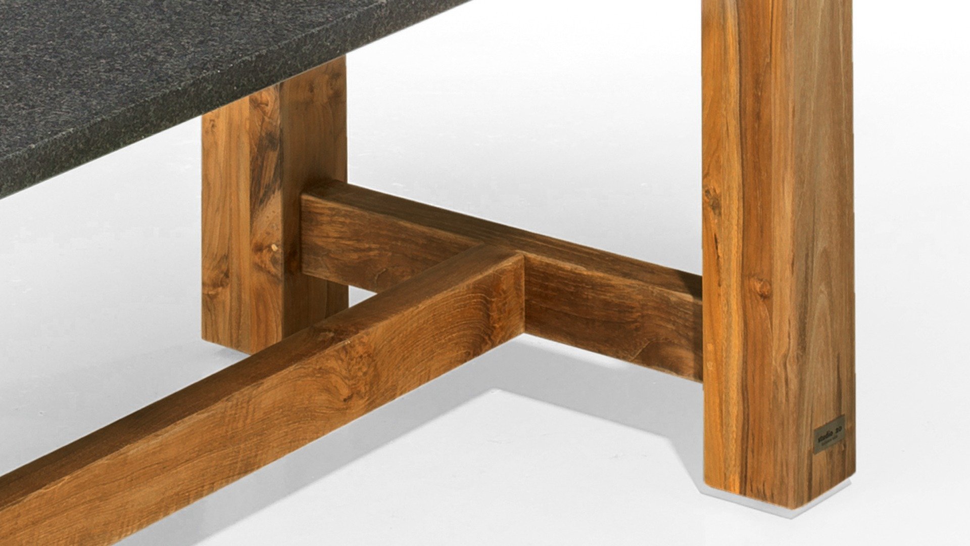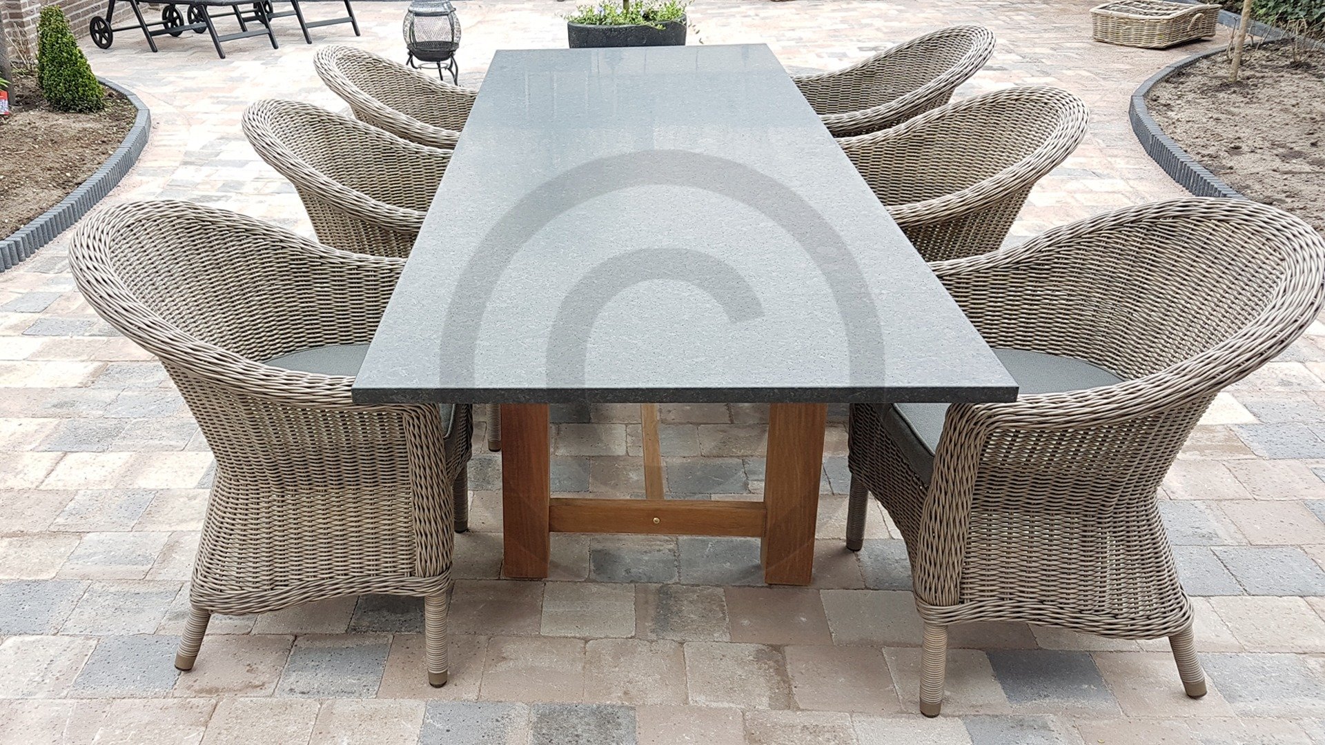 Een granieten tafel van Studio20 staat garant voor kwaliteit. De warme kleuren van het Voss frame in combinatie met het donkere graniet maken van deze tafel een pareltje. Onderhoudsvrij genieten!