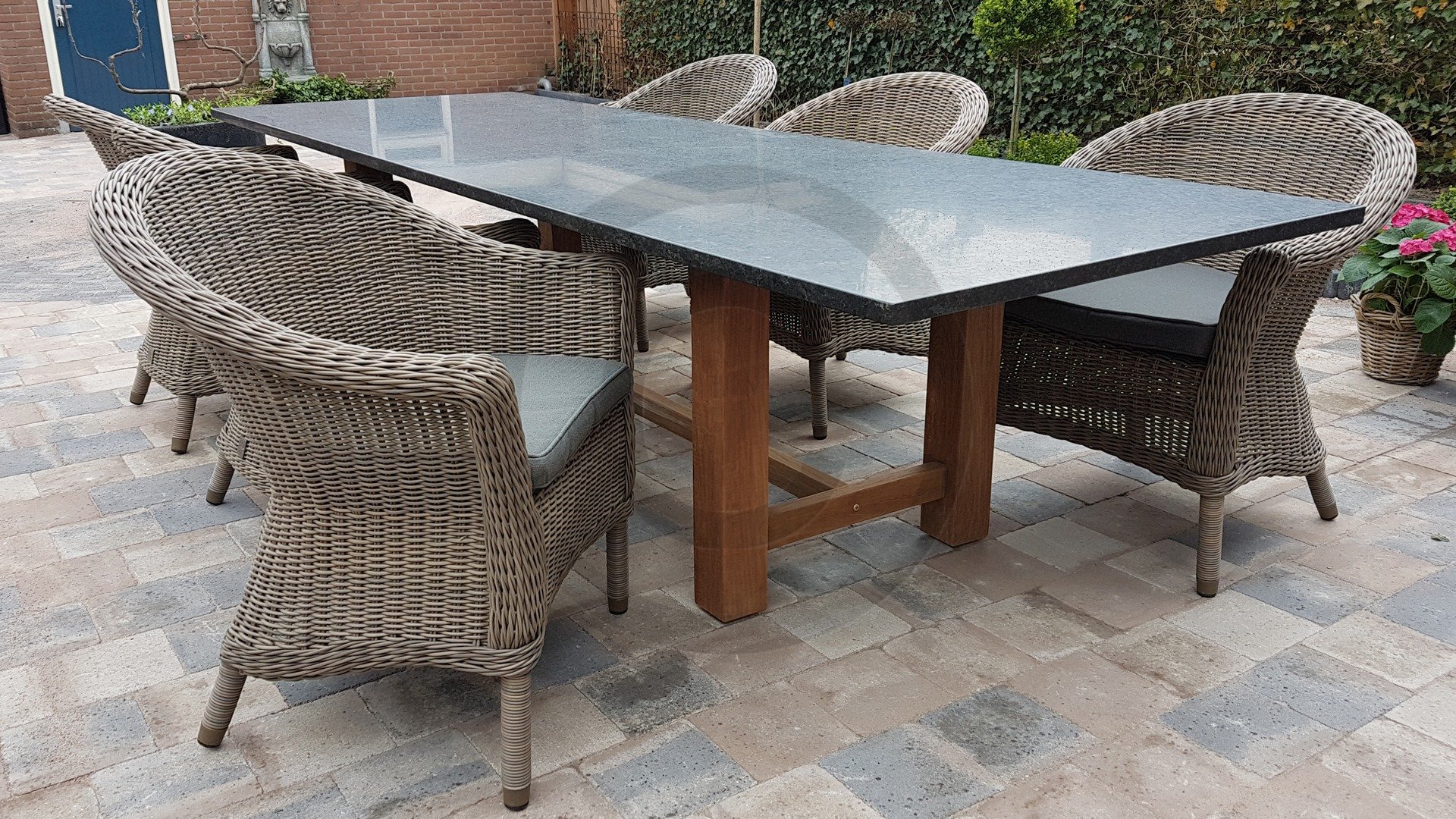 Ein Granittisch von Studio20 steht für Qualität. Die warmen Farben des Voss-Rahmens in Kombination mit dem dunklen Granit machen diesen Tisch zu einem Schmuckstück. Genießen Sie pflegefrei!