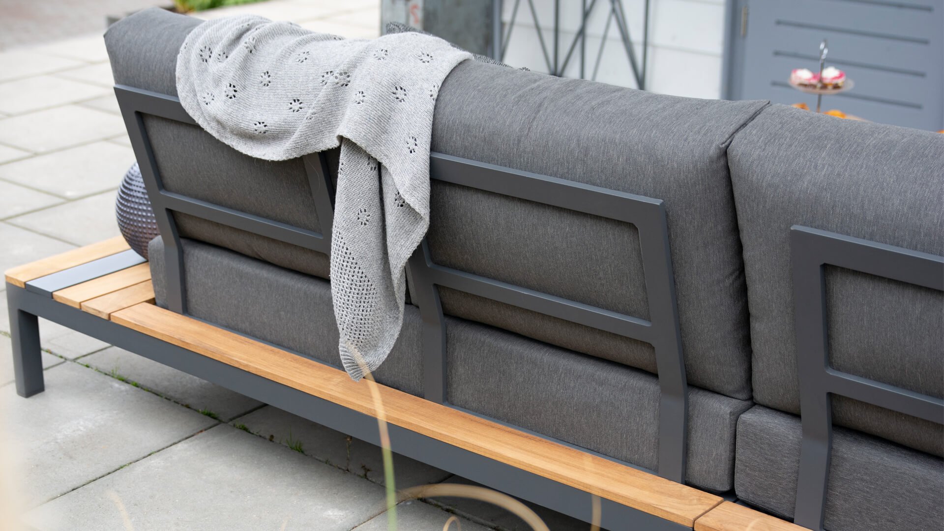 Die Taste by 4 Seasons Meridien Loungeset ist eine moderne Plattform-Loungeset mit einem klaren Design. Die halb-wetterfesten Kissen, die auf dem Loungeset liegen, sind serienmäßig und bieten einen hohen Komfort. Das Set ist sowohl mit einem Ecktisch als auch mit einer Kissen-Ecke erhältlich. Der Vorteil der geschlossenen Kissen-Ecke ist, dass das Set einen zusätzlichen Sitzplatz hat. Und dass Sie von der Ecke aus herrlich mit den Beinen auf der Bank "loungen" können! Die Farbkombination aus Teakholz und Aluminium verleiht dem Set ein fantastisches Aussehen!