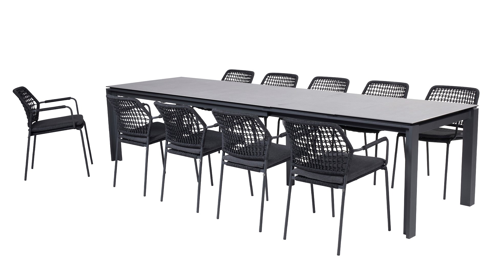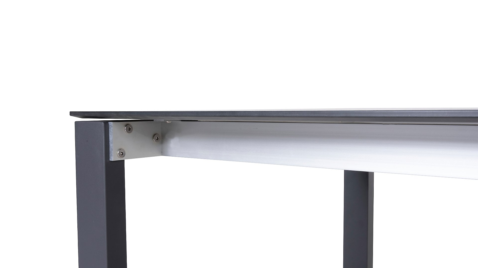 Ein Neuzugang in der Goa-Serie, das Goa Extending. Es wird mit einer pulverbeschichteten anthrazitfarbenen Basis zusammen mit einer HPL-Schiefer-Anthrazit-Platte geliefert. Nahezu wartungsfrei! Der Tisch ist in den Größen 180 cm, 230 cm und 280 cm verstellbar. Und diese Funktion ist praktisch für besondere Anlässe.